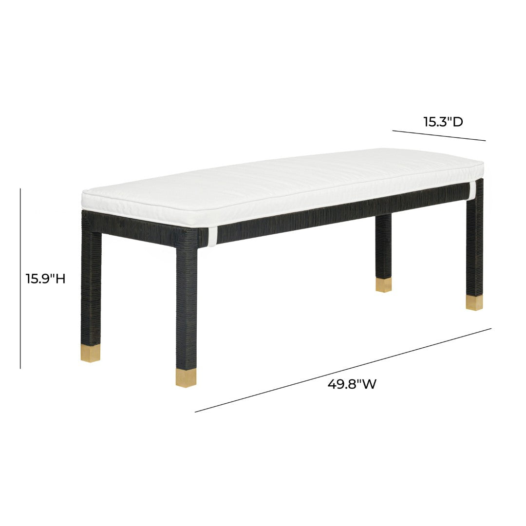 Bring a breezy, coastal-inspired look to your home with this handcrafted woven rattan bench. Designed for comfort and versatility, it pairs sun-soaked textures with modern details”brass-capped legs and a water-repellent performance cushion”making it ideal for the foot of the bed, an entryway landing, or extra dining seating.