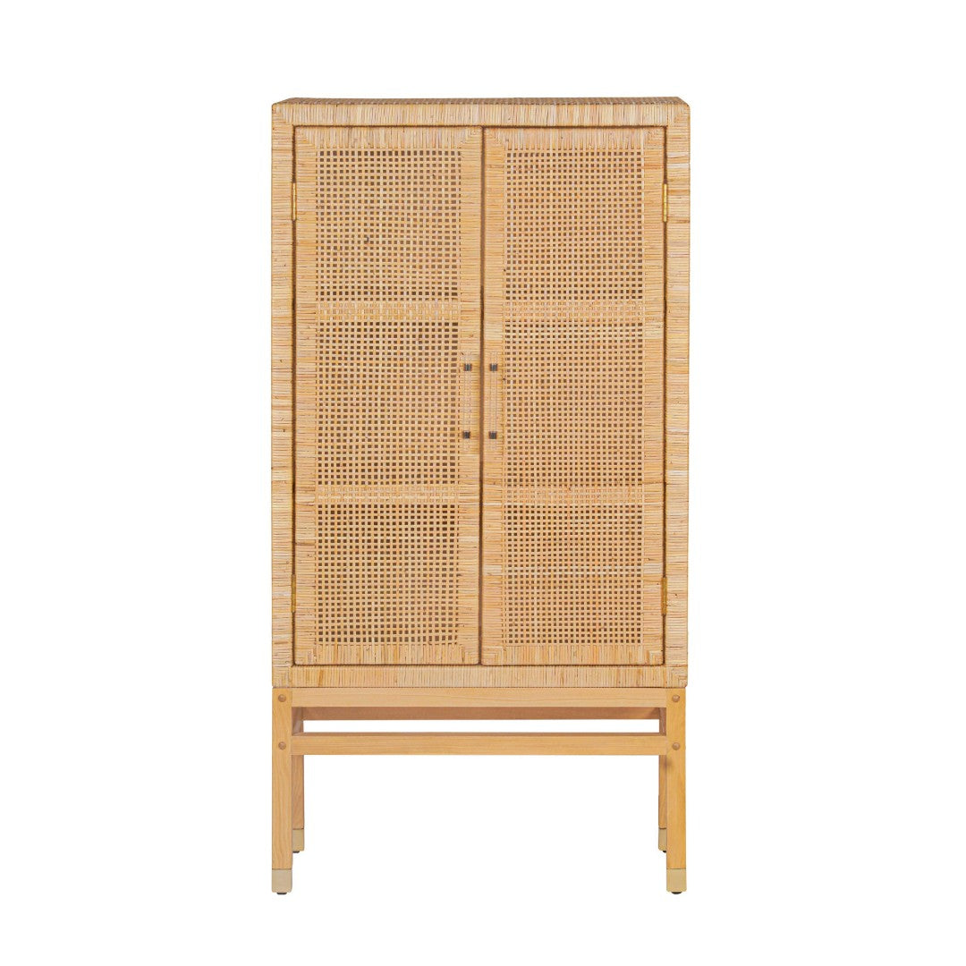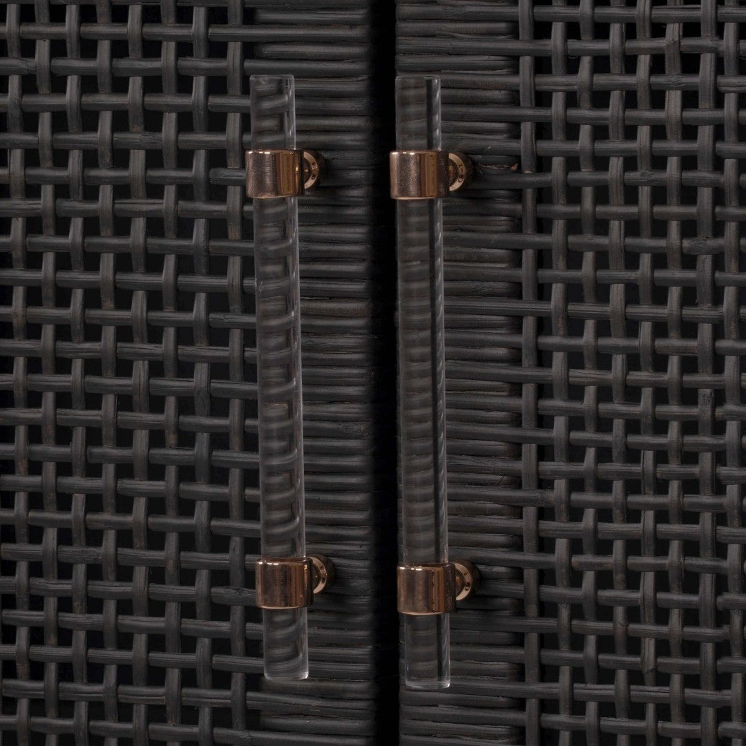 Bring warm, coastal-inspired style and smart storage to your home with the Amara Woven Rattan Cabinet. Handcrafted with wrapped rattan over a solid mahogany frame, this tall buffet blends relaxed California-cool aesthetics with refined details”brass-capped legs, lucite hardware, and a textured natural weave”to create a versatile focal point for living rooms, dining areas, or entryways.