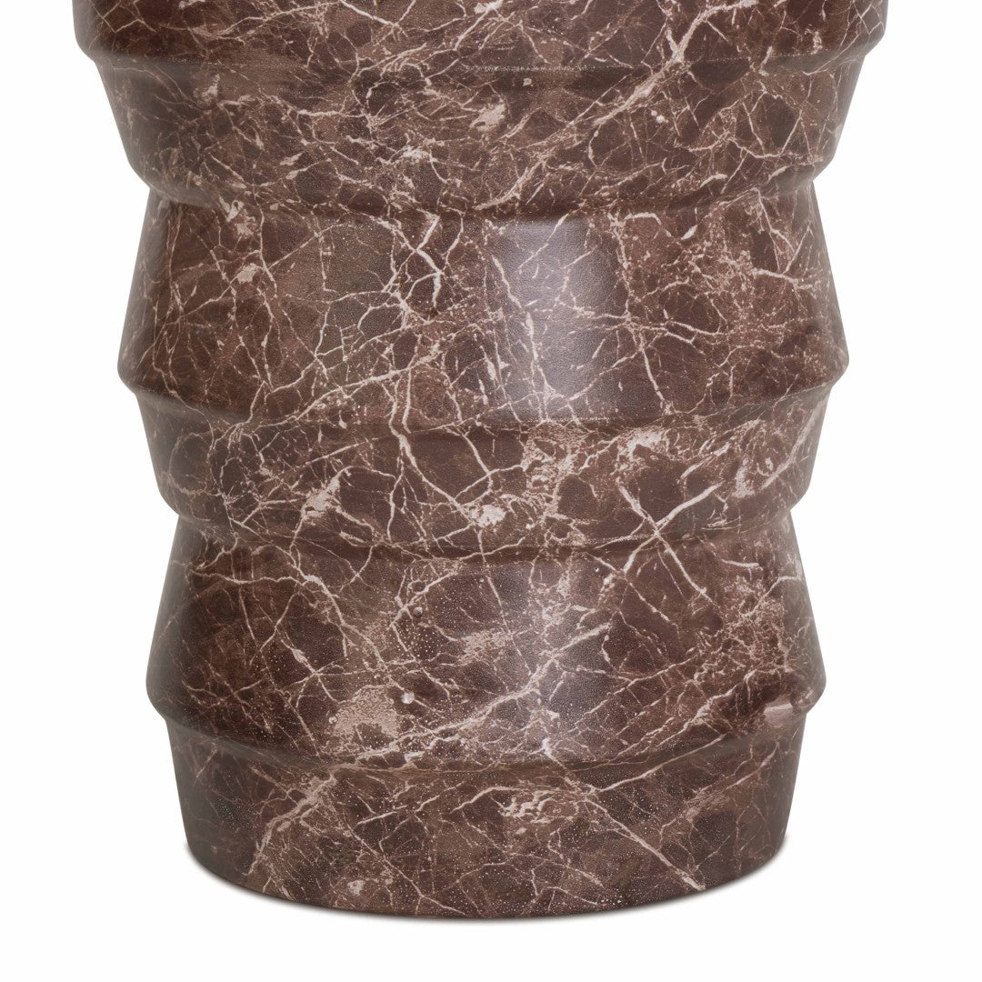Bring contemporary flair to any room or outdoor space with this sculptural side table. Its faux Red Levanto marble finish atop a durable reinforced concrete form delivers striking, weather-resistant style that works equally well beside a sofa, next to a bed, or as a bold patio accent. Fully assembled and built to last, it combines artful aesthetics with practical performance.