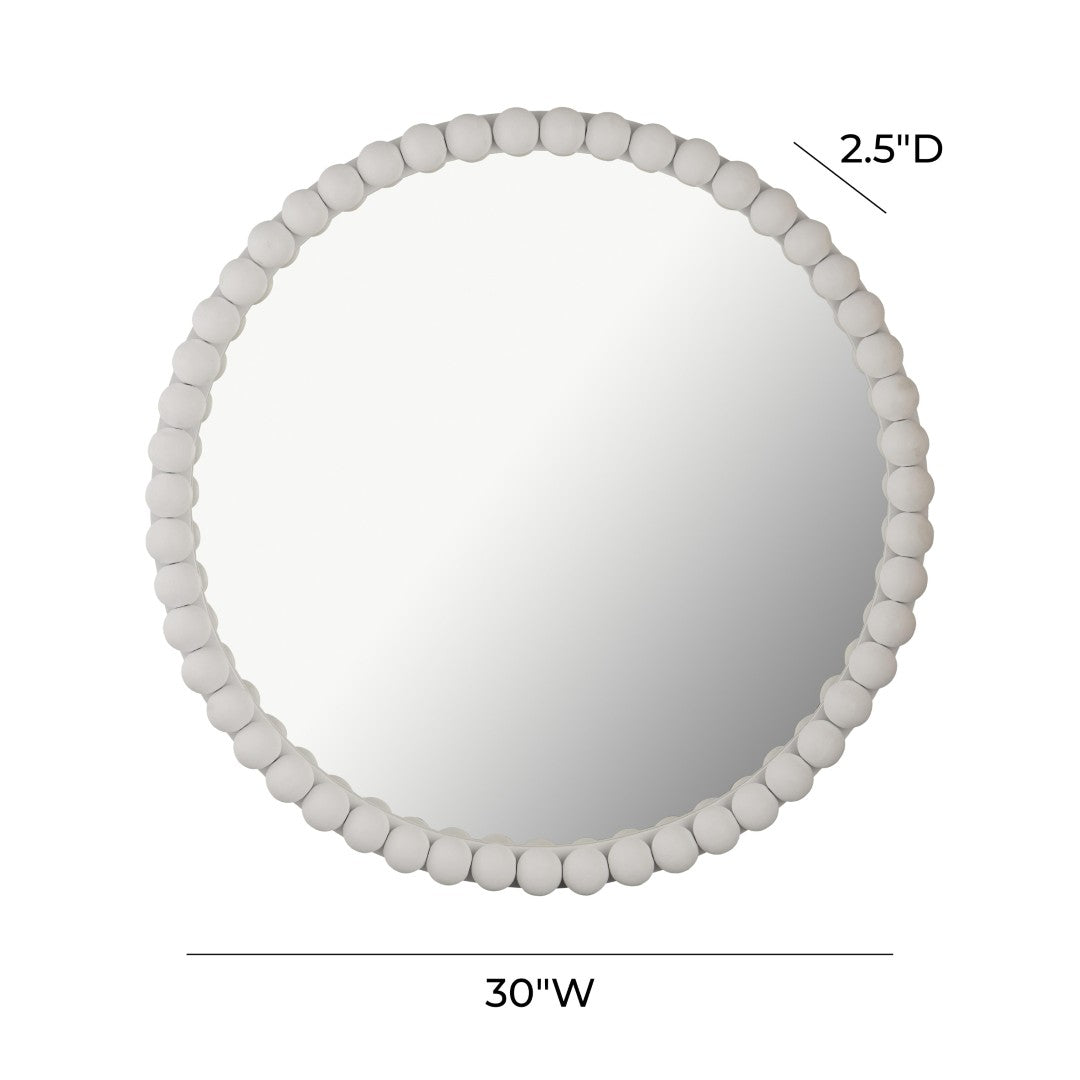 Add a touch of organic charm to any room with the Baria round wall mirror. Its handcrafted wooden frame brings subtle texture and warmth while the clear circular mirror creates a focal point that enhances light and visual depth. Designed to fit modern and transitional interiors, Baria balances playful detail with understated elegance.