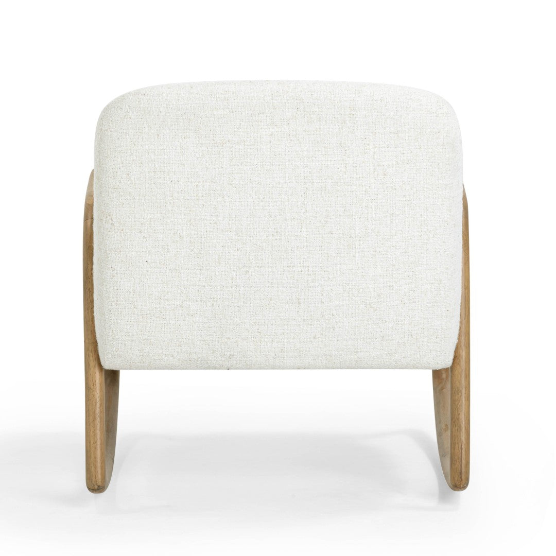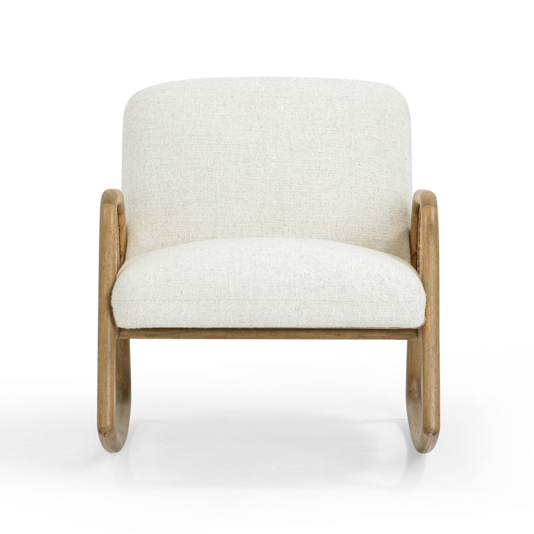 Refresh your living space with the Bonney Cream Performance Fabric Rocking Chair ” a modern take on a classic silhouette that blends airy cane detailing and a solid wood frame with durable, easy-care upholstery. Designed for everyday comfort and lasting style, this handcrafted rocker pairs plush seating with a smooth, natural rocking motion that suits nurseries, reading nooks, or accent corners.