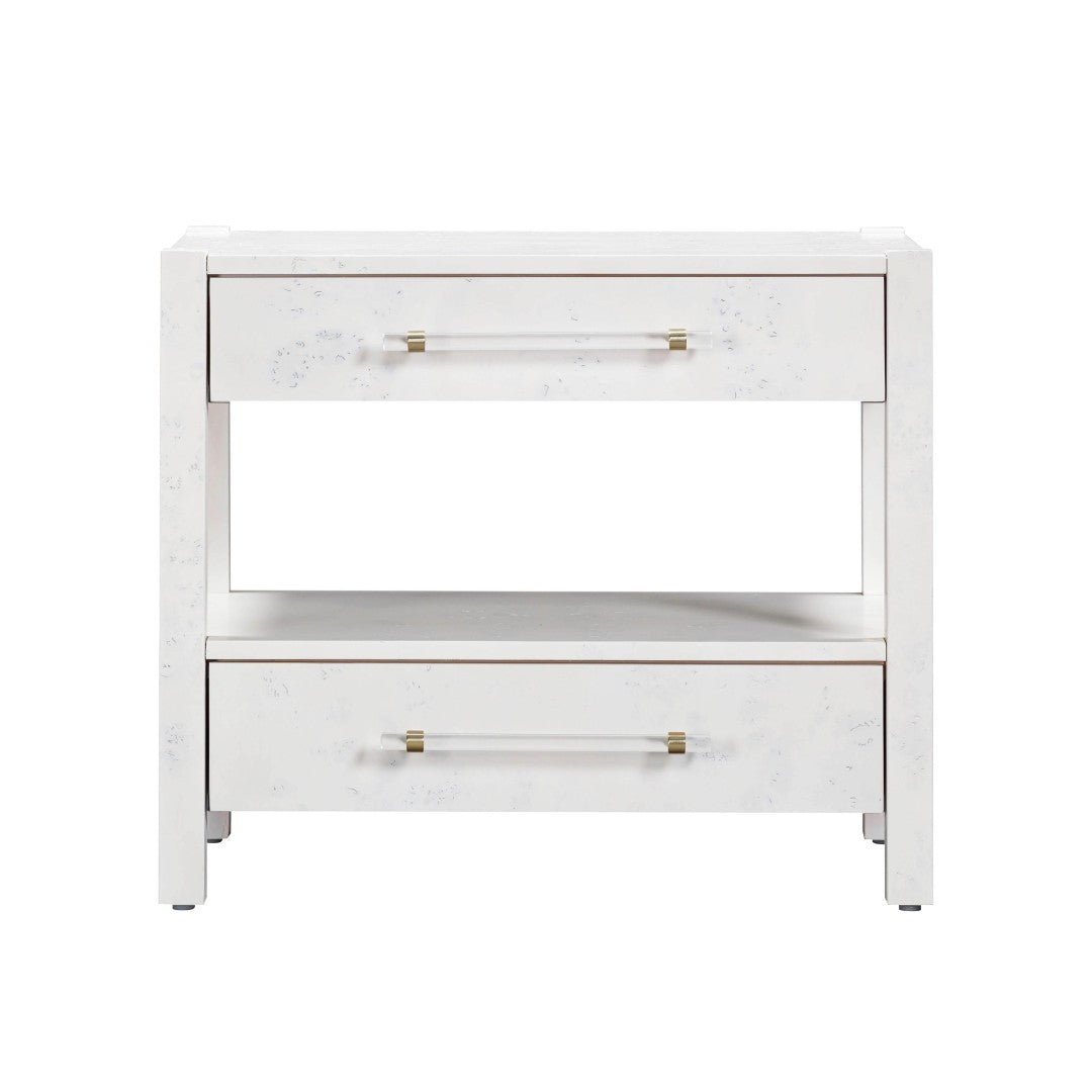 Bring organic texture and modern simplicity to your bedroom with this elegant 2-drawer nightstand. The Brandyss piece pairs a natural burl wood finish with clean lines and subtle rustic brass accents, offering both refined style and everyday functionality. Designed to showcase its swirling grain from every angle, this nightstand complements contemporary and transitional interiors while providing thoughtful storage solutions.