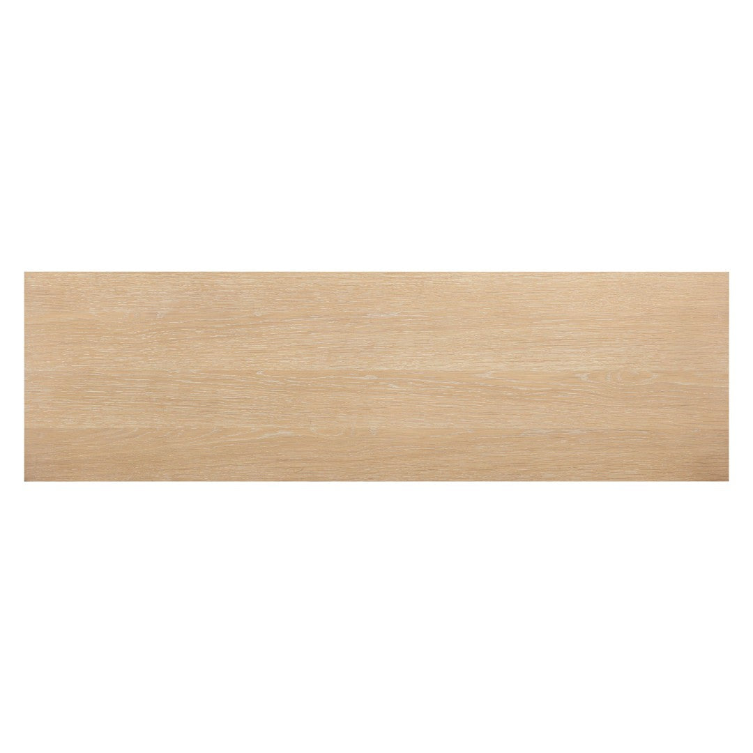 - Finish: Natural whitewashed oak finish that highlights wood grain while offering a versatile, neutral tone