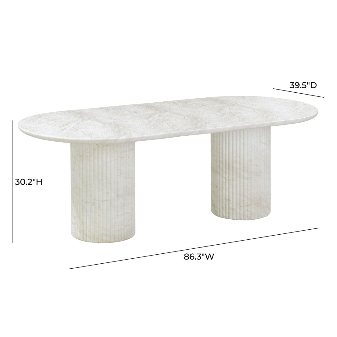 Elevate your dining experience with a sculptural centerpiece that combines industrial strength and refined style. This oval dining table features a realistic travertine or white marble patterned finish on a durable concrete build, designed to create a warm, timeless focal point for both indoor and outdoor settings. Its elongated silhouette and tapered edges promote easy conversation and comfortable seating for family meals, gatherings, or alfresco entertaining.