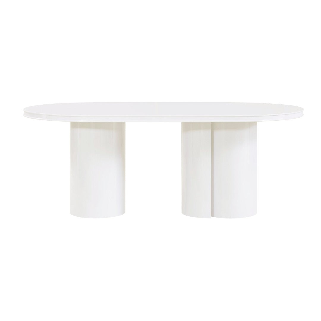 A striking blend of modern minimalism and architectural presence, this lacquer oval dining table elevates contemporary dining rooms with its expansive sculptural top and polished finish. Ideal for family meals or entertaining, it balances durability with refined aesthetics”available in crisp white or bold blue to suit your décor and also offered in a round version if a different footprint is preferred.