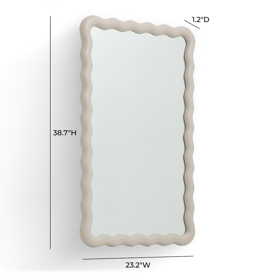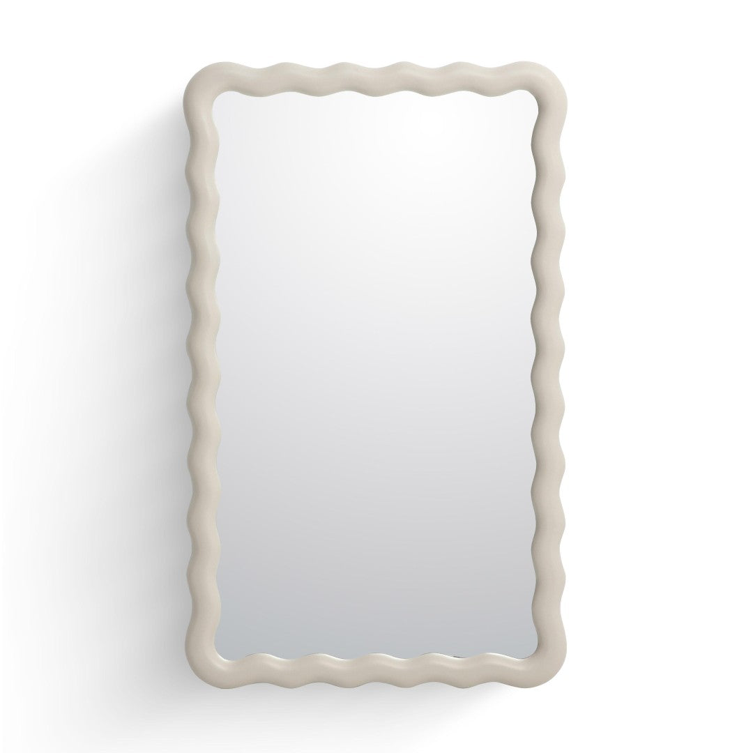 Add a playful, sculptural touch to your entryway, bedroom, or living room with this cream squiggle rectangular wall mirror. The matte-finished, wavy frame creates a modern, whimsical silhouette that works equally well hung vertically or horizontally, while the high-quality mirror glass and handcrafted construction provide both style and durability.