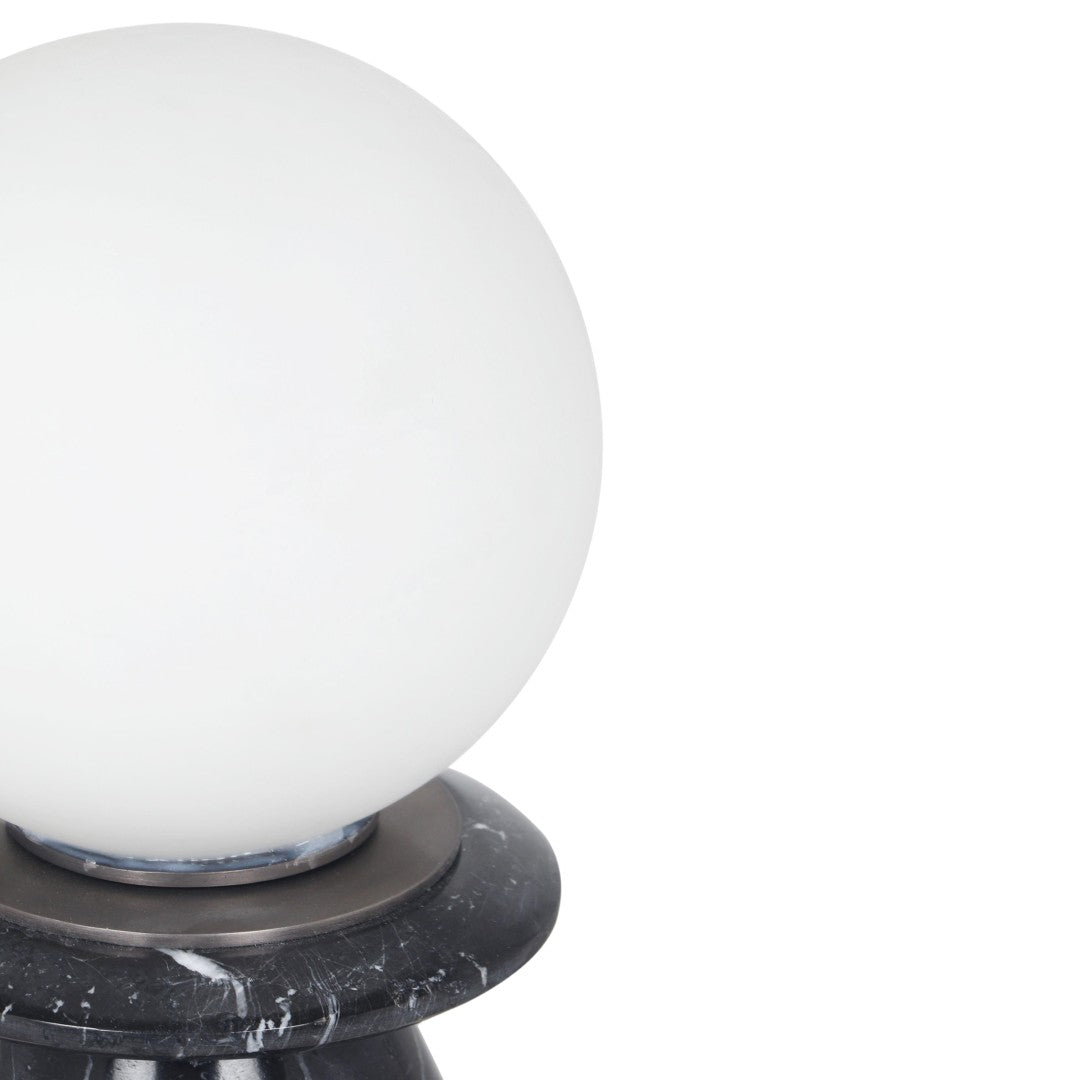 - Materials: Solid genuine marble base with frosted glass globe for opaque, even light diffusion