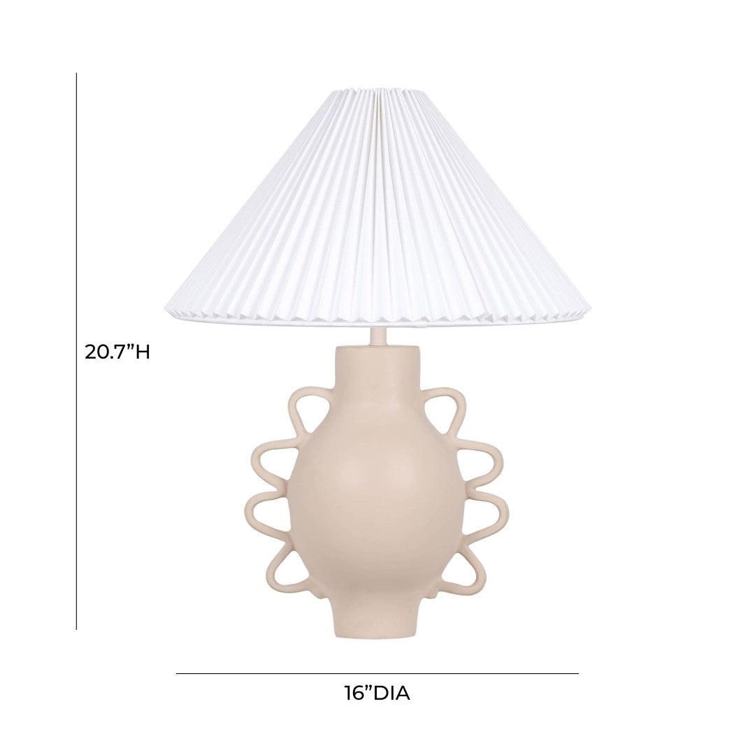 Introduce a sculptural accent to your home with this pleated table lamp that blends organic texture and refined craftsmanship. Its biomorphic, hand-formed fiberglass base and elegant pleated shade create a balanced statement piece that complements both maximalist interiors and serene, wabi-sabi spaces. Perfect for living rooms, bedrooms, entryways, or as a standout bedside luminaire.