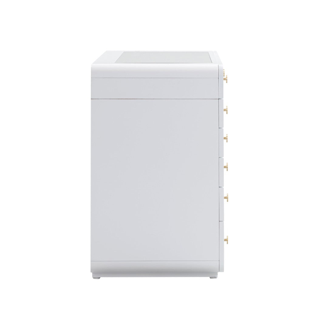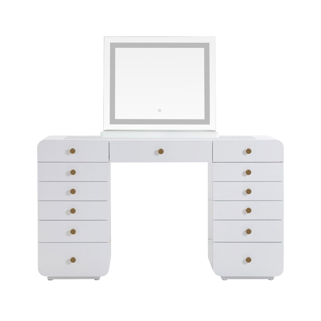 Create a dedicated, salon-style getting-ready station with this Hollywood-inspired white vanity desk and LED panel mirror. Designed for everyday glam and streamlined organization, the set blends a luminous LED mirror, thoughtfully sized tabletop, and multiple soft-closing drawers so your makeup routine is efficient, comfortable, and camera-ready.