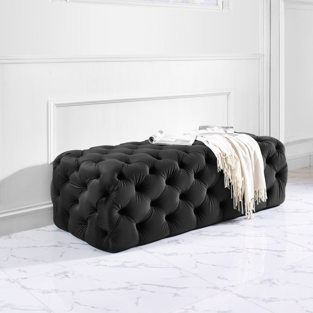 Elevate your living space with the Kaylee jumbo ottoman ” a luxurious, statement-making piece that blends sumptuous comfort with classic tailoring. Its deep button tufting and plush velvet invite you to relax, while a solid wood frame and handcrafted construction ensure lasting durability. Perfect as a central coffee table alternative, extra seating, or a stylish footrest, the Kaylee ottoman complements a variety of decor styles and is offered in multiple velvet color options.