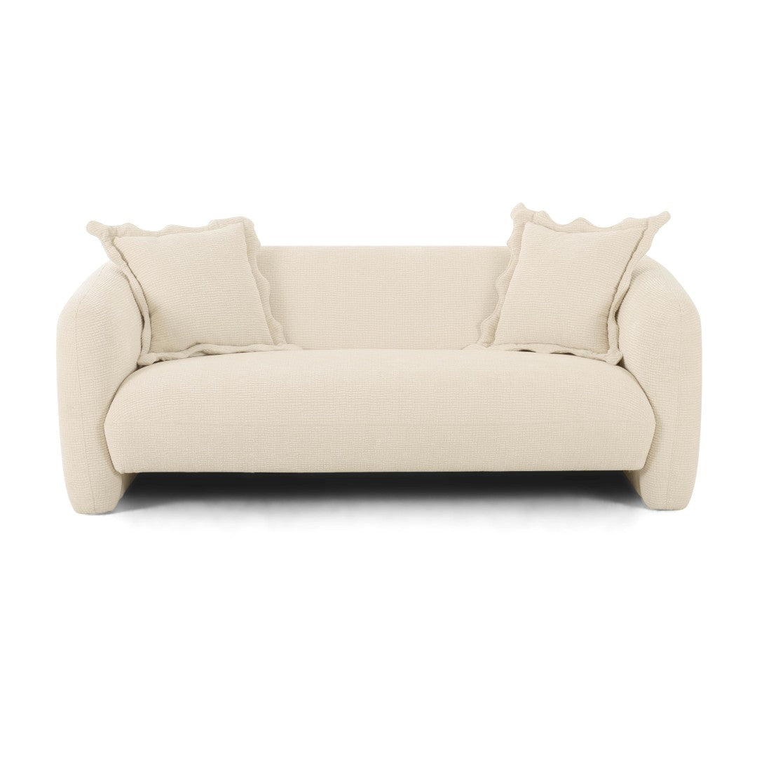Soft, stylish, and thoughtfully detailed, this loveseat from the Lou collection brings cloudlike comfort and a touch of whimsical charm to your living space. Upholstered in a sandstone textured fabric, it pairs plush seating with playful accents”two squiggly-edged throw pillows”to create a cozy focal point that suits both modern and relaxed interiors.