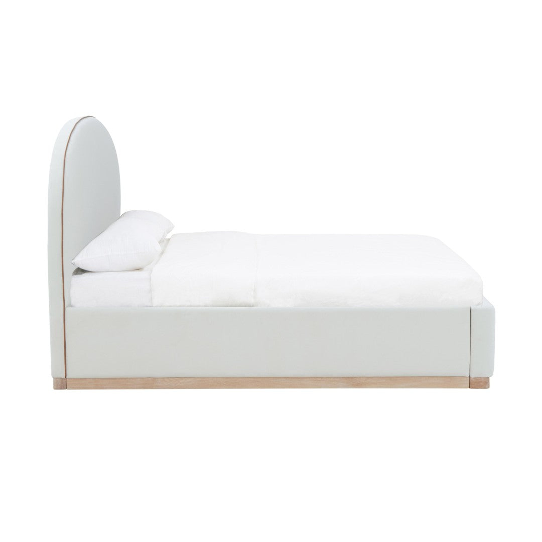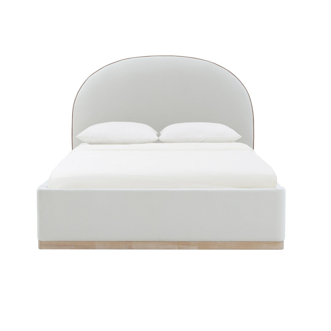 Elevate your bedroom with the Marlow Velvet Bed ” a refined centerpiece that pairs plush comfort with contemporary lines. Sumptuously upholstered in cream velvet with cognac piping and grounded by a natural wood plinth base, this bed balances luxurious texture and sturdy construction to create a timeless focal point for modern and classic interiors alike.