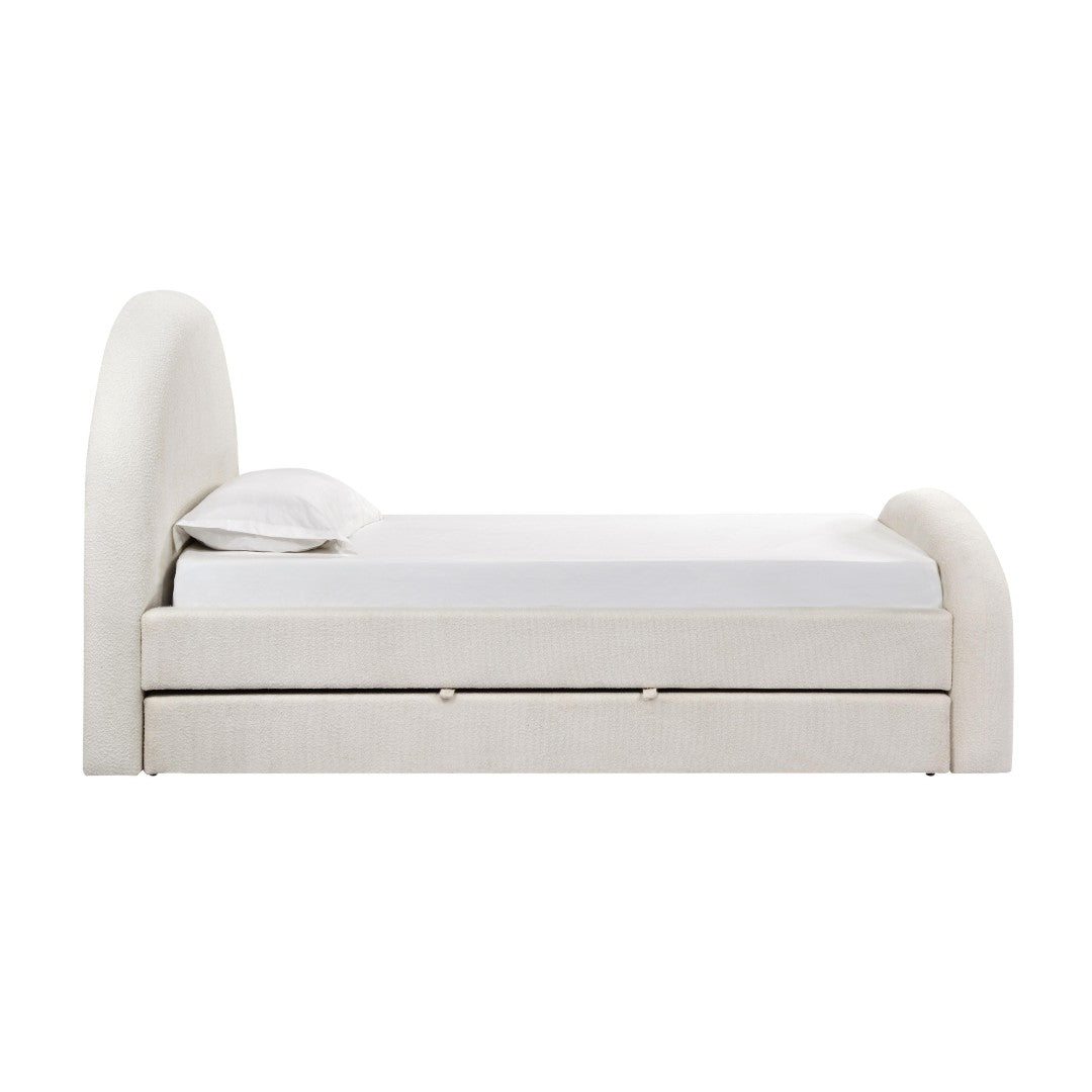 Create a cozy, stylish sleeping space with the Moon Cream Bouclé Twin Trundle Bed. Inspired by Art Deco silhouettes, this adaptable piece pairs refined design with practical function”choose a standard twin or add the hidden trundle for overnight guests or extra storage. Upholstered in soft cream bouclé over a sturdy pine and plywood frame, it™s available in multiple colors and fabrics to suit modern and classic interiors alike.