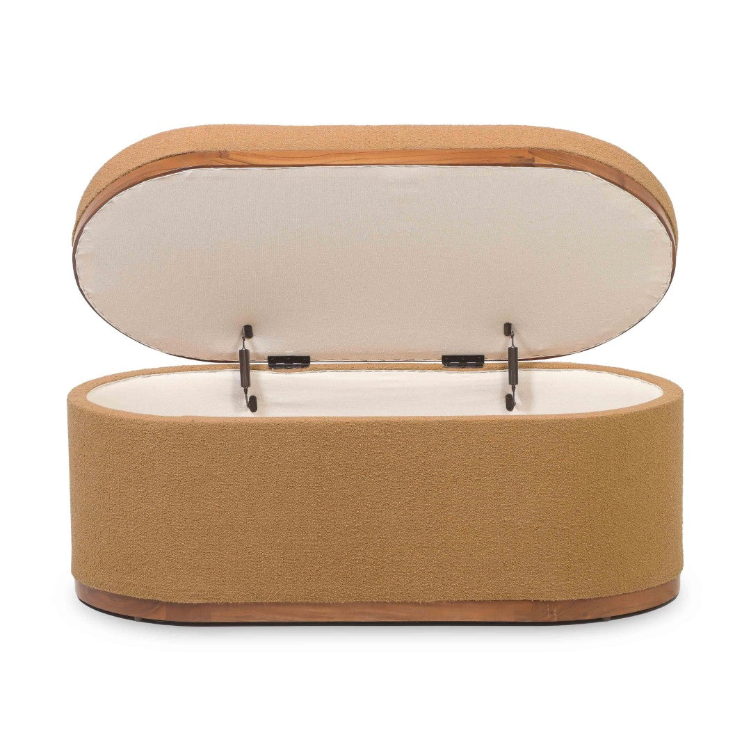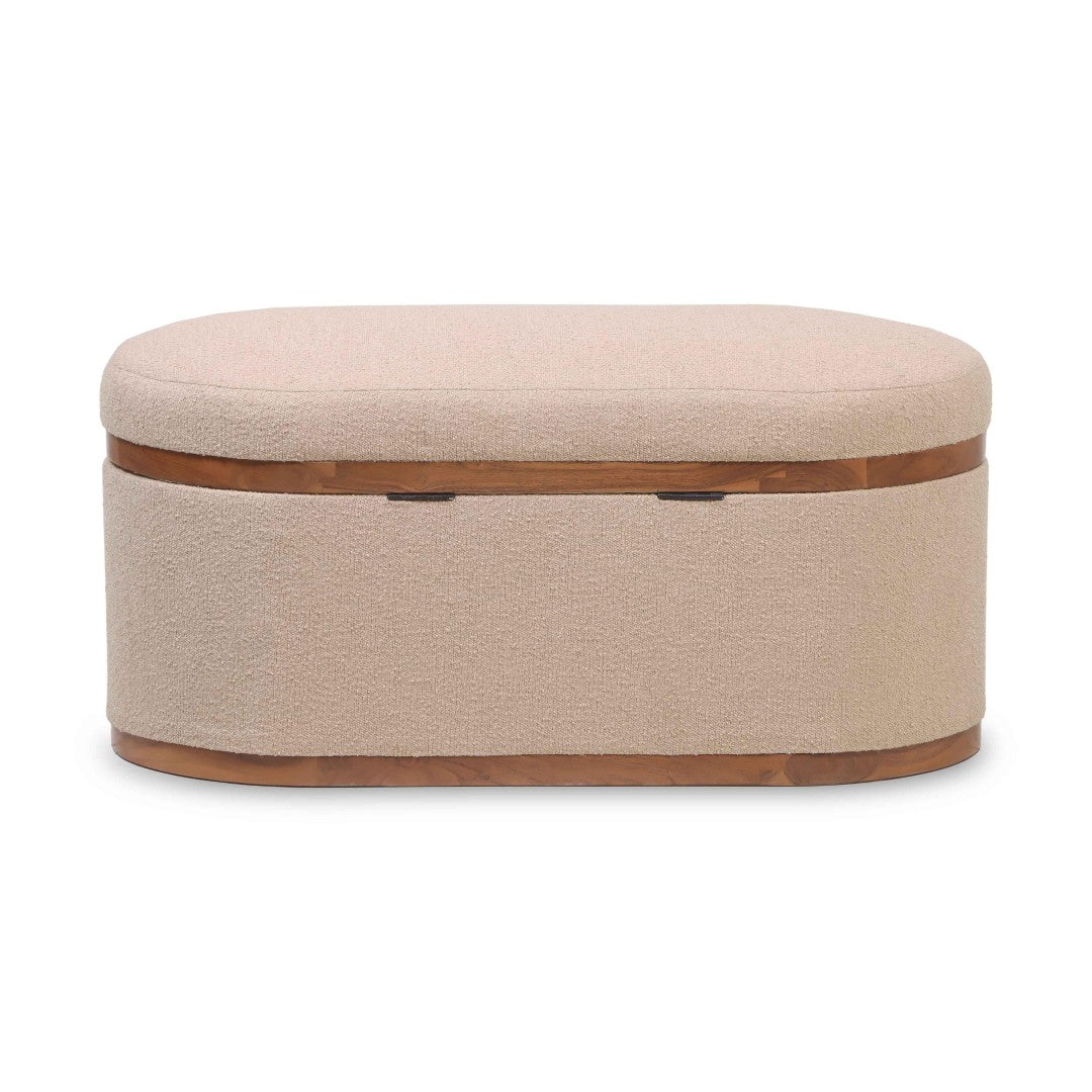 Bring warmth and texture to your living room with the Olivier Oval Storage Ottoman ” a stylish, multifunctional piece that combines soft boucle or patterned cotton upholstery with practical storage and refined acacia detailing. Its elegant oval silhouette and tilting lid make it equally suited as extra seating, a low coffee table, or discreet storage for linens and pillows, while the artisanal finish lends a layered, sophisticated look to contemporary and bohemian interiors alike.