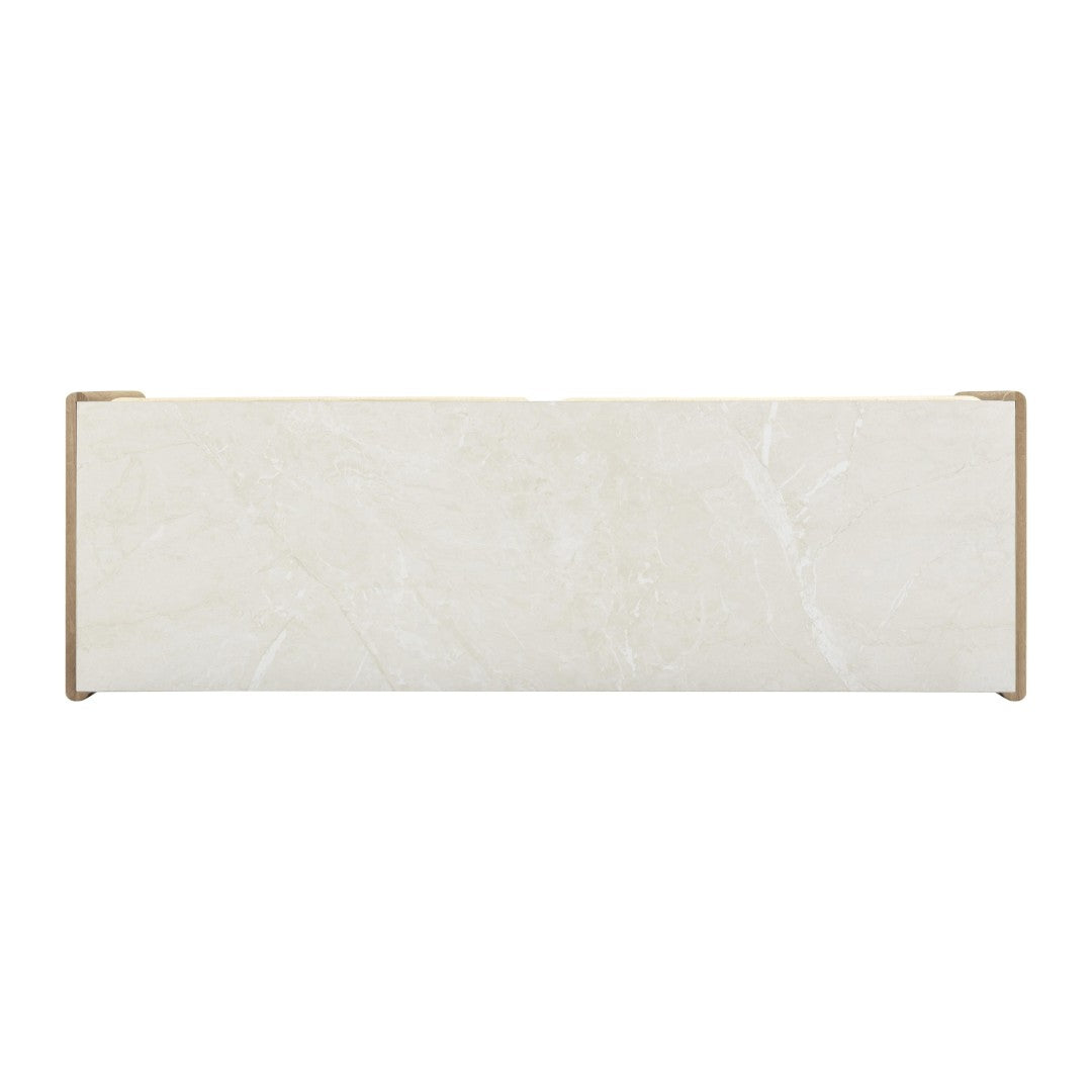 Bright and airy with a nod to mid-century modern design, this console desk blends natural oak warmth with tropical raffia texture and a creamy faux marble top for an inviting, lived-in look. Built for both style and function, it offers thoughtful storage, soft-close drawers, and a durable finish that requires no sealing or staining”perfect for a home office, entryway, or bedroom workspace.