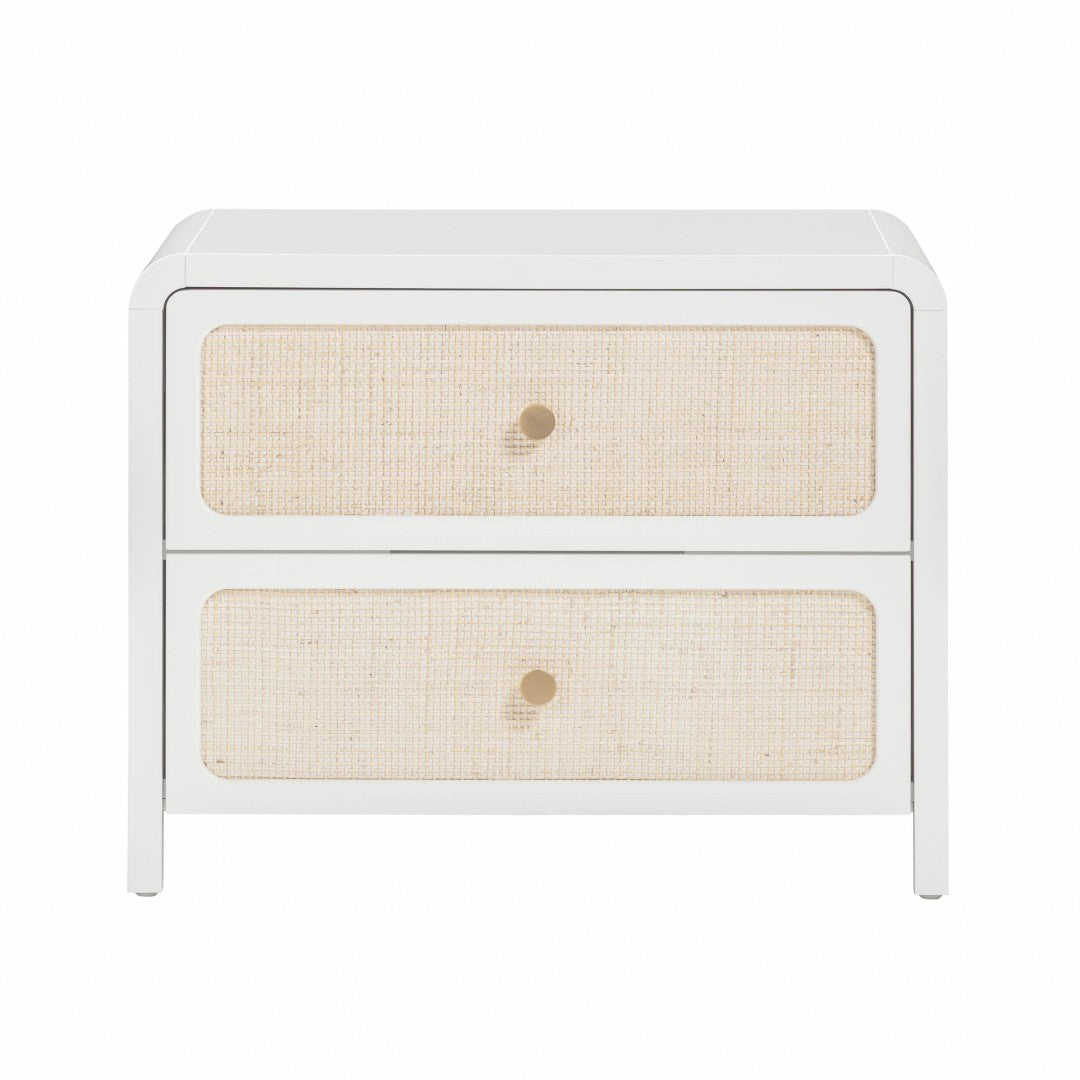 Bring a breezy, vacation-at-home vibe to your bedroom or guest space with this handwoven rattan nightstand. Softly rounded edges, zinc hardware, and pastel-tinged finishes create a relaxed, coastal-inspired look while practical details”like two roomy soft-close drawers and a fully assembled delivery”make it a sensible everyday piece.