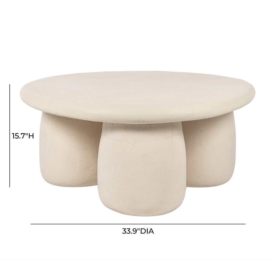 Bring an effortless, organic focal point to your living space with this handmade cream round coffee table. Its raw-edge stone look and wabi-sabi aesthetic create a calm, natural atmosphere while the lightweight FRP construction makes it practical for everyday use”indoors or outdoors. Expertly finished by hand, each piece offers subtle variations that enhance its unique character.
