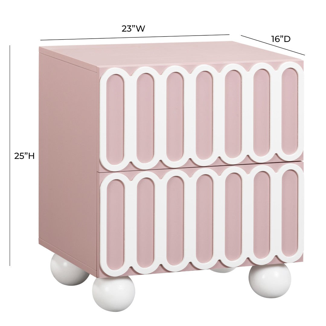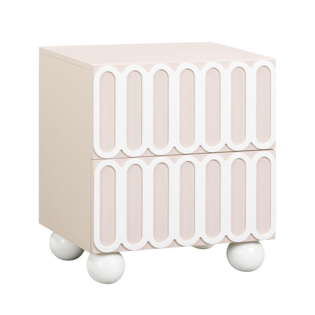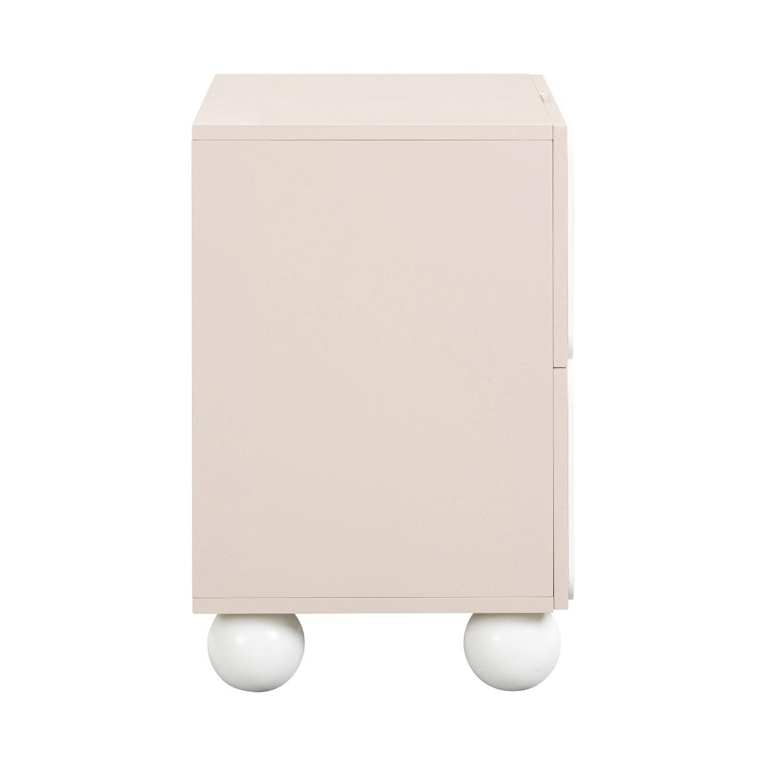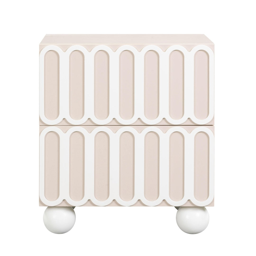 Give your bedroom a stylish upgrade with the Tori Motif 2-Drawer Nightstand ” a compact, design-forward piece that blends sculptural detail with everyday functionality. Its statement facade and solid wood spherical legs create a Hollywood-inspired silhouette, while the medium sheen finish balances dramatic appeal with easy care. Smooth soft-close drawers keep nightly routines quiet and organized, and the handcrafted construction ensures each nightstand is thoughtfully finished.