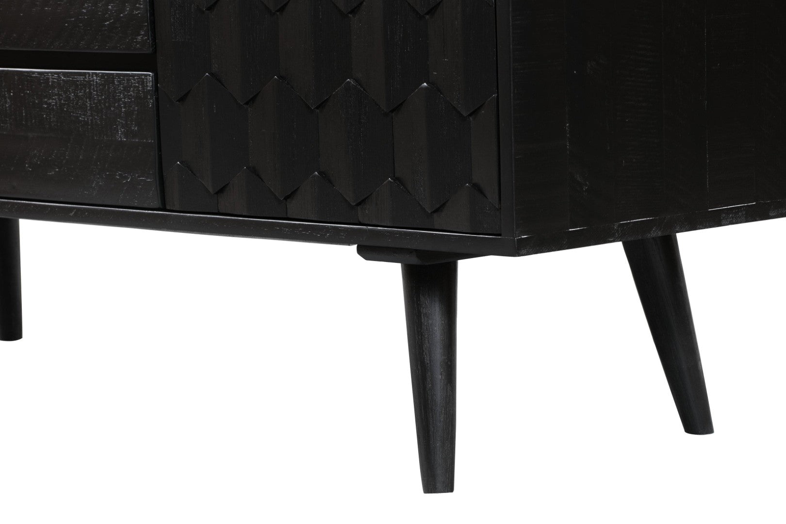 Elevate your dining or entertaining space with the Valentina buffet ” a handcrafted statement piece that combines Hollywood-glam elegance with artisanal woodworking. Its striking geometric front, rich black finish, and solid Acacia construction create a luxurious focal point that balances show-stopping design with everyday functionality.