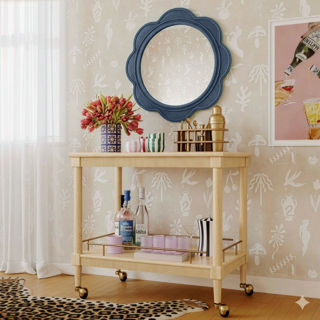 Elevate any room with the Zeva round wall mirror ” a vibrant, handcrafted accent that blends sculptural texture with practical reflection. Its hand-wrapped spun paper cord frame adds artisanal charm and bold color, making this mirror an eye-catching focal point for entryways, living rooms, hallways, or above a vanity.