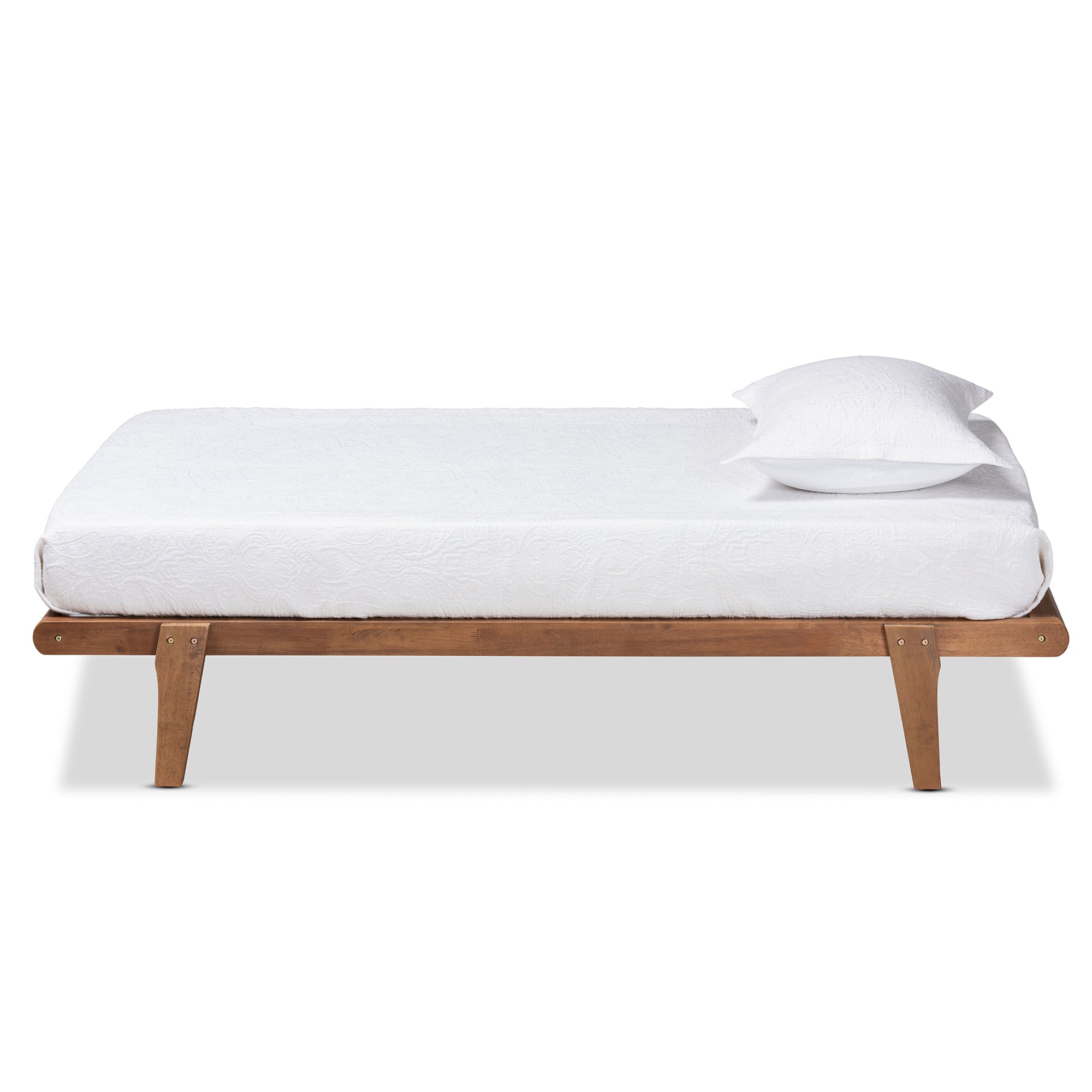 - Feature 1: Mid-century modern platform bed frame