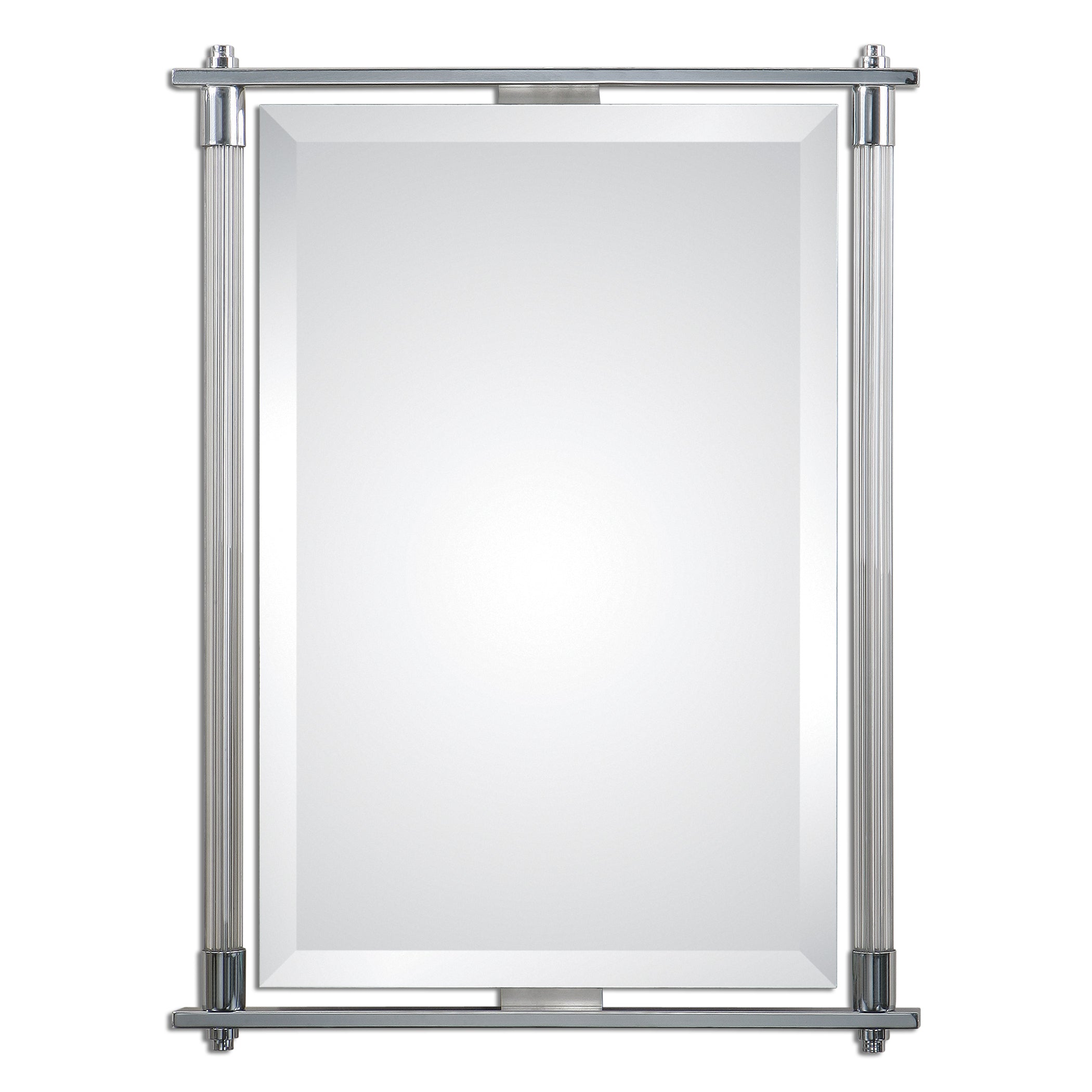 Ribbed Glass Columns Accented With Polished Chrome Plated Details. Mirror Features A Generous 1 1/4" Bevel And May Be Hung Horizontal Or Vertical.