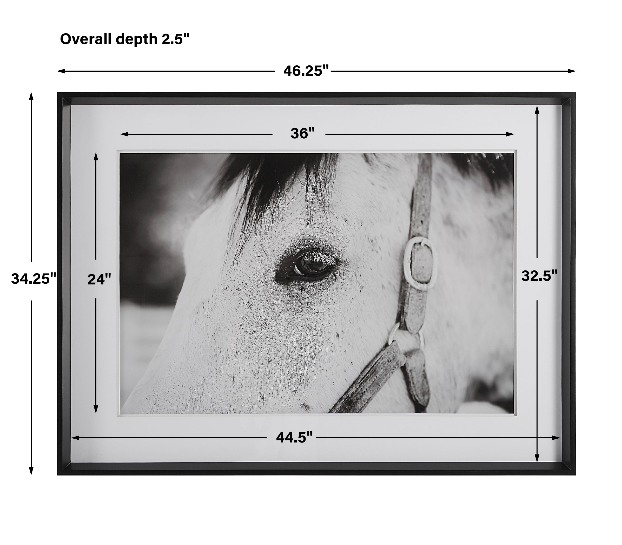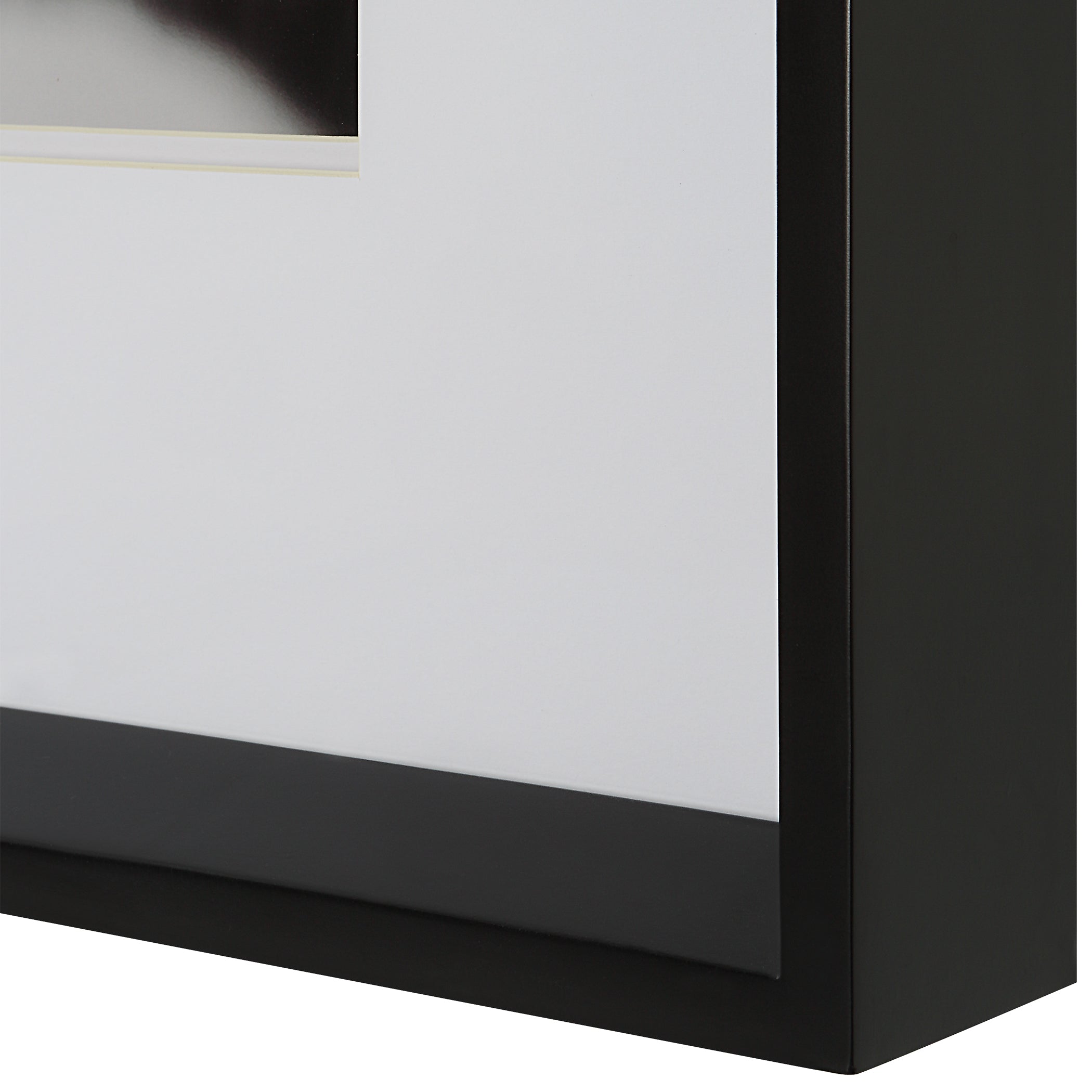 - Finish/Frame Description: Satin Black Chamfered Edge Frame, Under Glass, Double White Matting With Spacer, Gallery Look, Black And White Photography