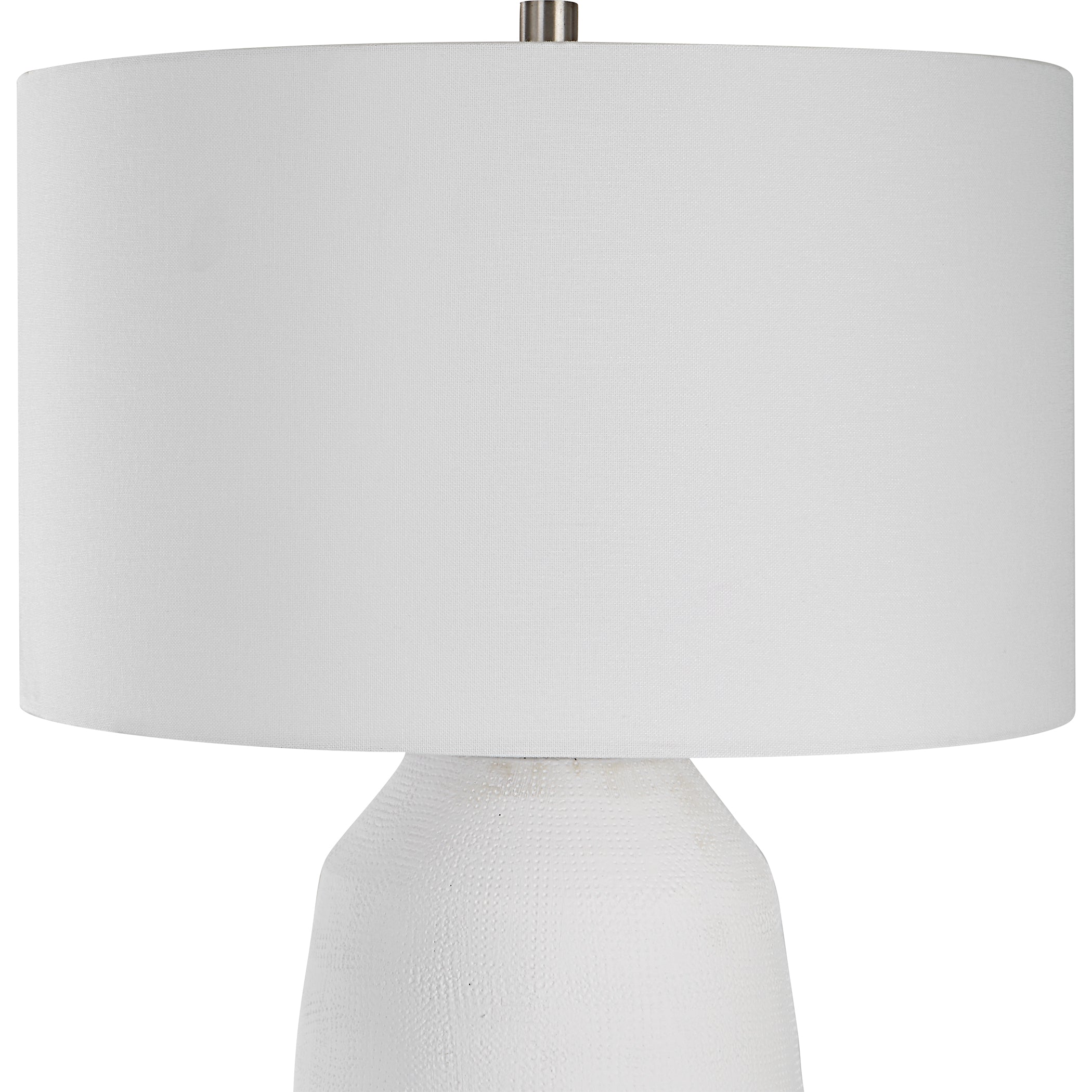 - Finish/Frame Description: With Its Casual Ceramic Build And Chalk White Matte Finish, The Styling Possibilities For This Table Lamp Are Virtually Endless. All Steel Details Are Finished In Brushed Nickel.