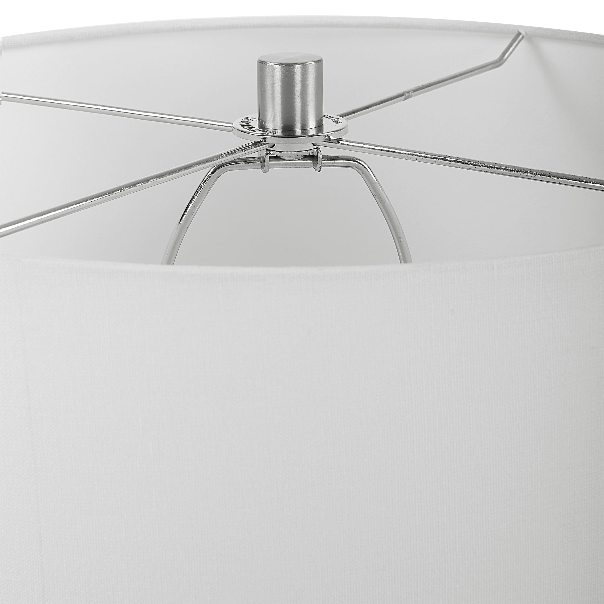 - Finish/Frame Description: This Sophisticated Lamp Displays A Unique Bubble Glass Base In Tranquil Aqua Gray With Plated Brushed Nickel Accents And Thick Crystal Details.