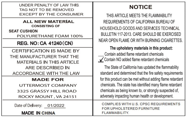 - CA Prop 65 Chemical Warning: WARNING: This product can expose you to chemicals including titanium dioxide which is known to the State of California to cause cancer. For more information, go to www.P65Warnings.ca.gov/furniture.