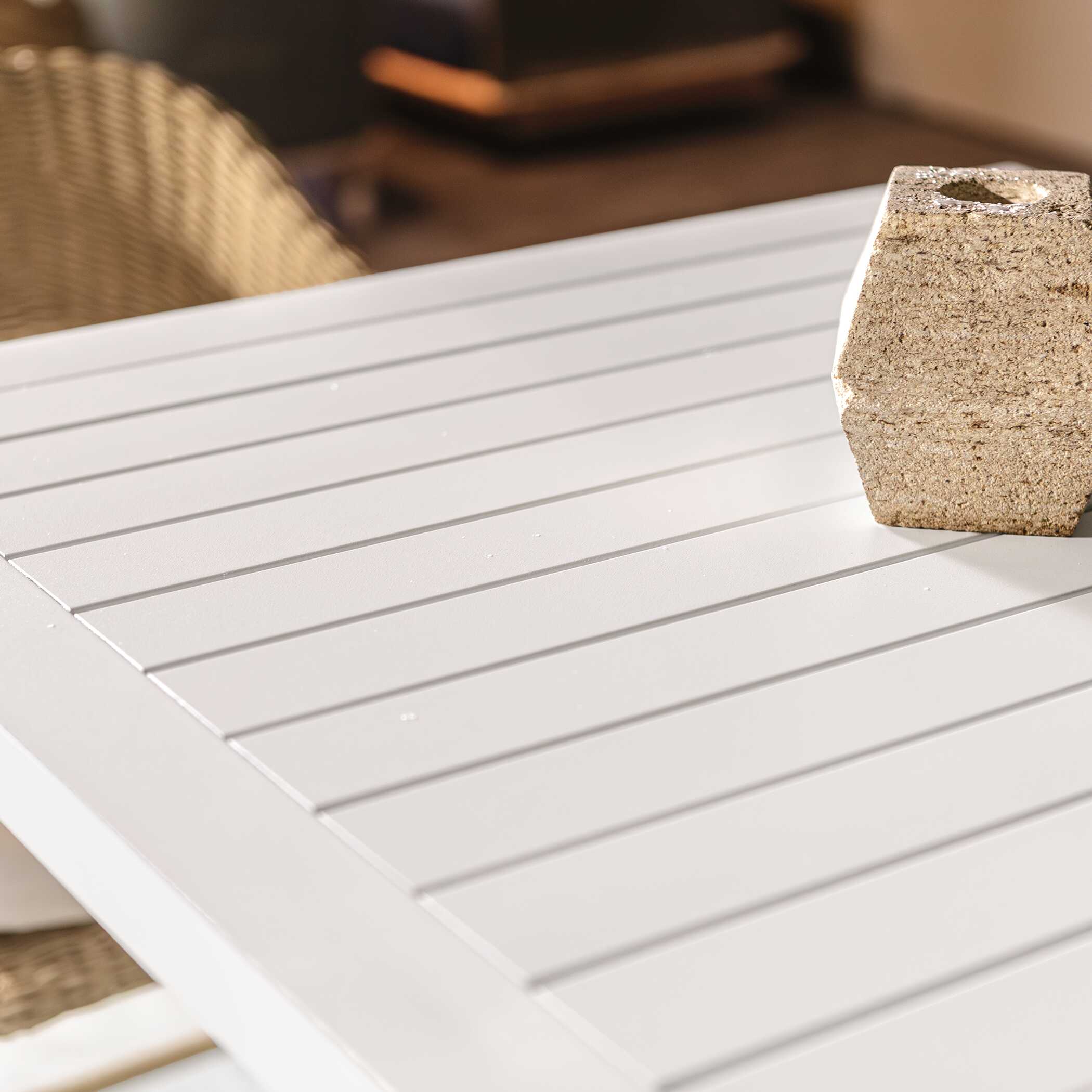 - This Sleek And Stylish Bar Table Is Perfect For Outdoor Entertaining. The Minimalist Design Features A Square Top And A Geometric Support Structure For Stability, Made Of Powder-coated Aluminum In A Crisp White Finish. Suitable For Both Indoor And Outdoor Use.