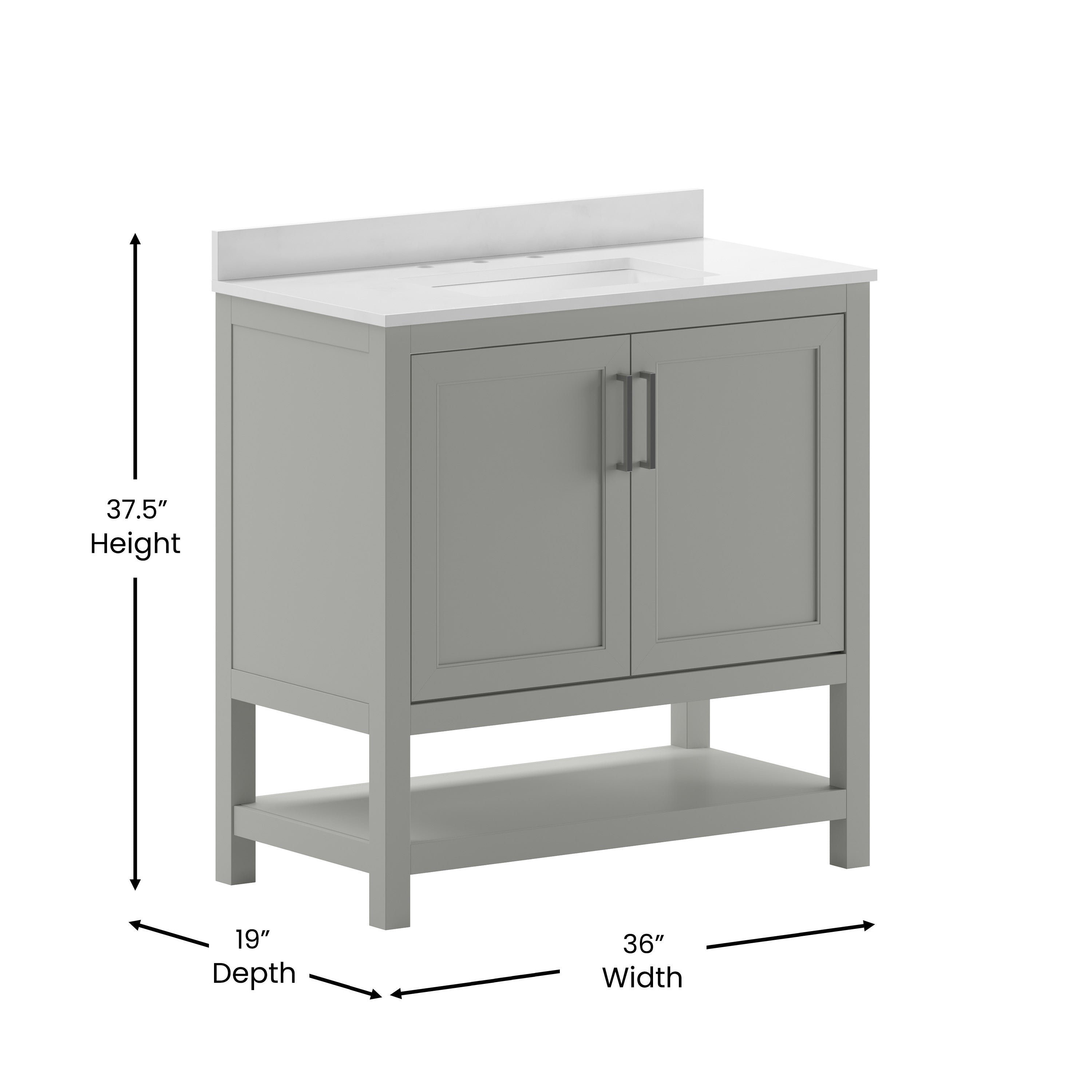 - Includes Cabinet, Countertop, Backsplash, and Ceramic Sink (Faucet and Drain Not Included)