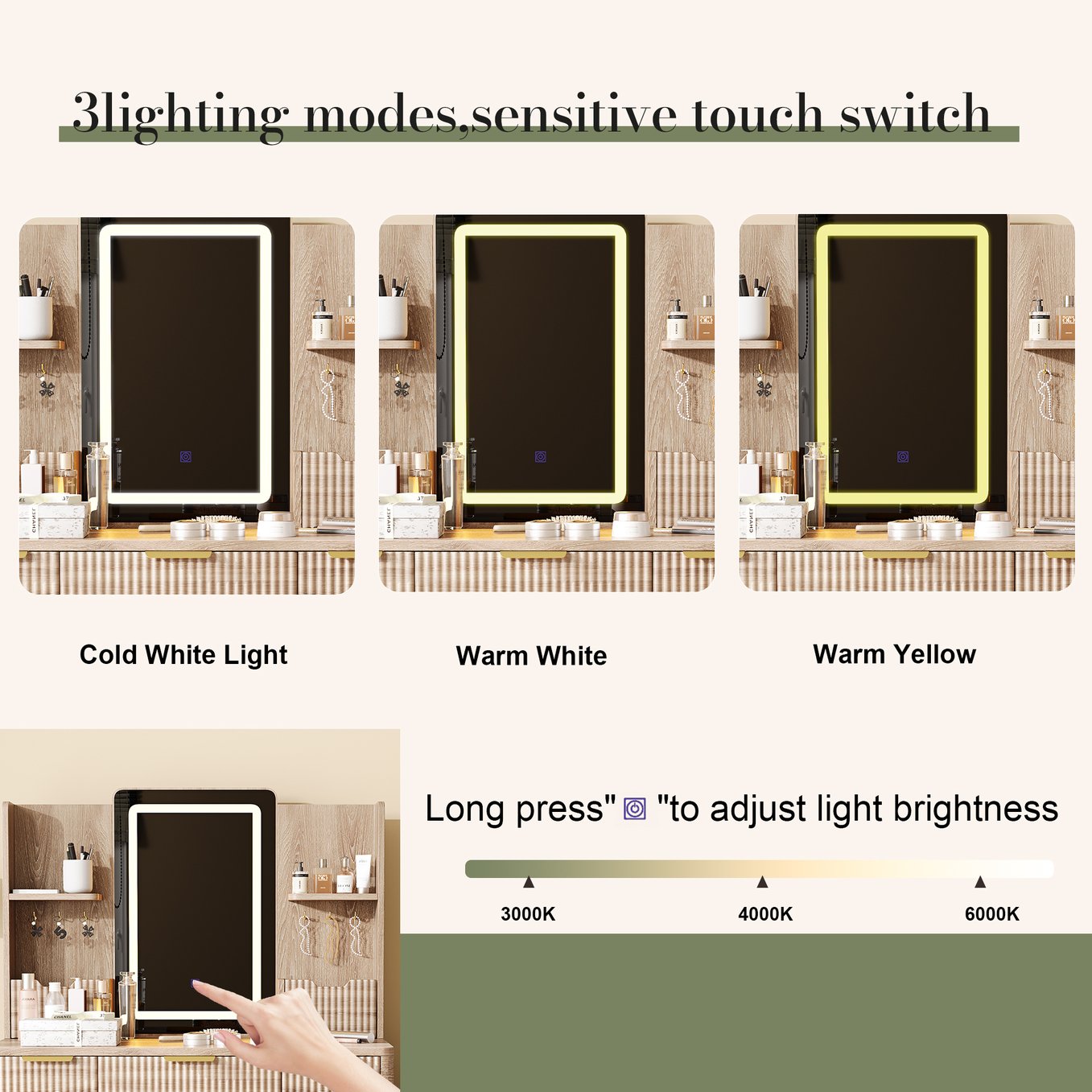- 【Professional LED Lighting for Flawless Application】Experience salon-quality illumination with the built-in LED mirror featuring stepless dimming and three color temperatures (Warm, Natural, Cool). This professional lighting system ensures perfect visibility for precise makeup application, whether for daily routines or special occasions, helping you achieve flawless results every time.