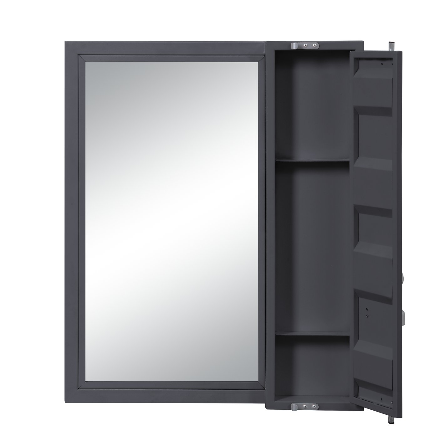 Bring modern industrial style and practical storage to your dressing area with this Gunmetal Finish Vanity Mirror. Designed for sharp reflection and secure organization, it combines a sturdy, cargo-inspired frame with a clear, full-length mirror—ideal for everyday grooming and dressing spaces that value both form and function.