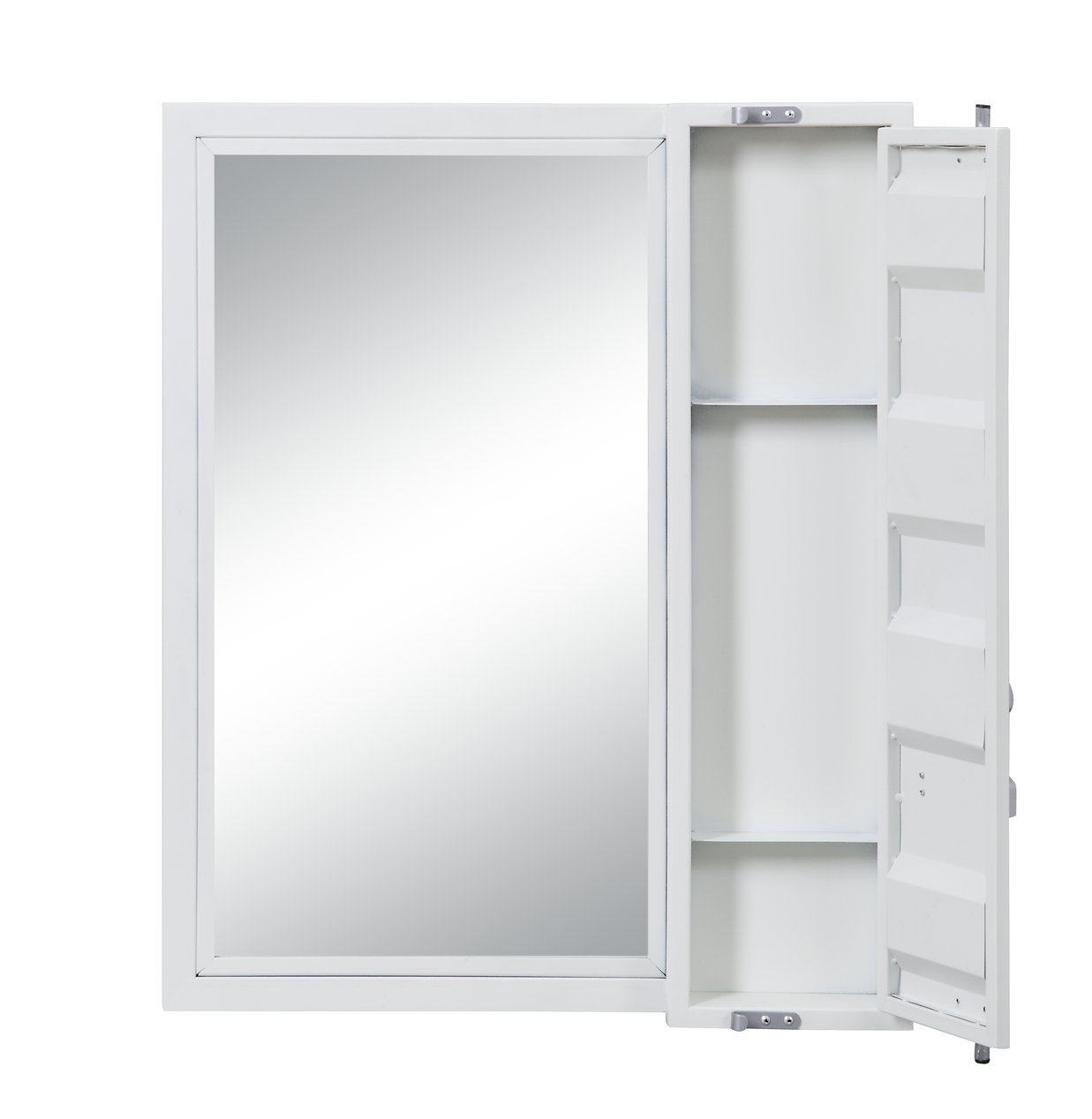Elevate your entryway or bedroom with this industrial-inspired white vanity mirror that combines practical storage with a crisp, distortion-free reflective surface. Its clean rectangular silhouette and cargo container–style panels provide a modern, utilitarian look while the concealed cabinet keeps essentials organized and out of sight.