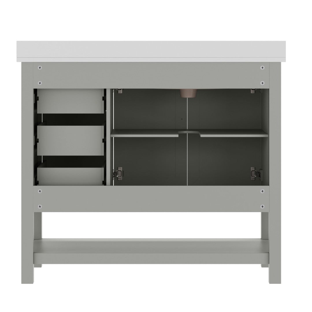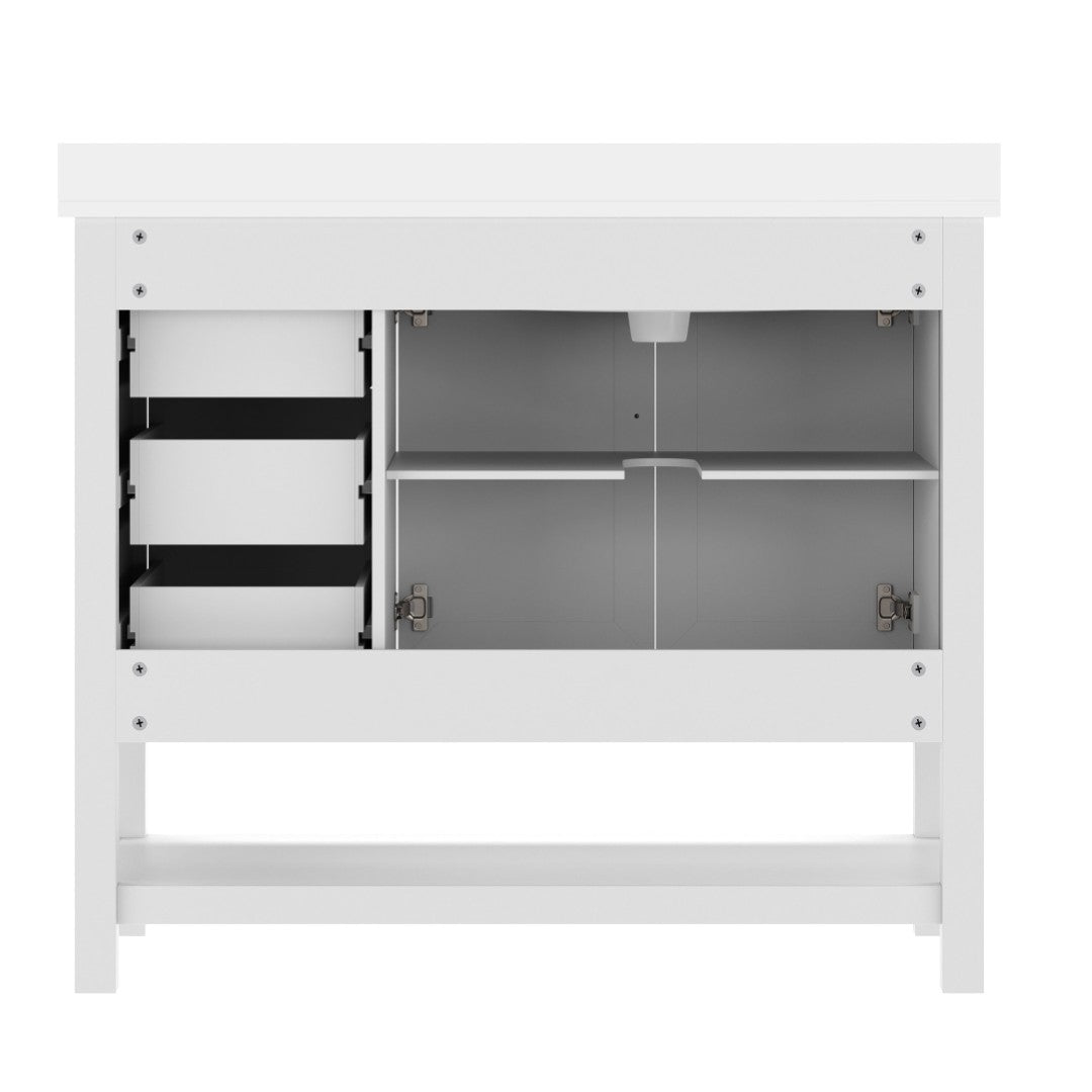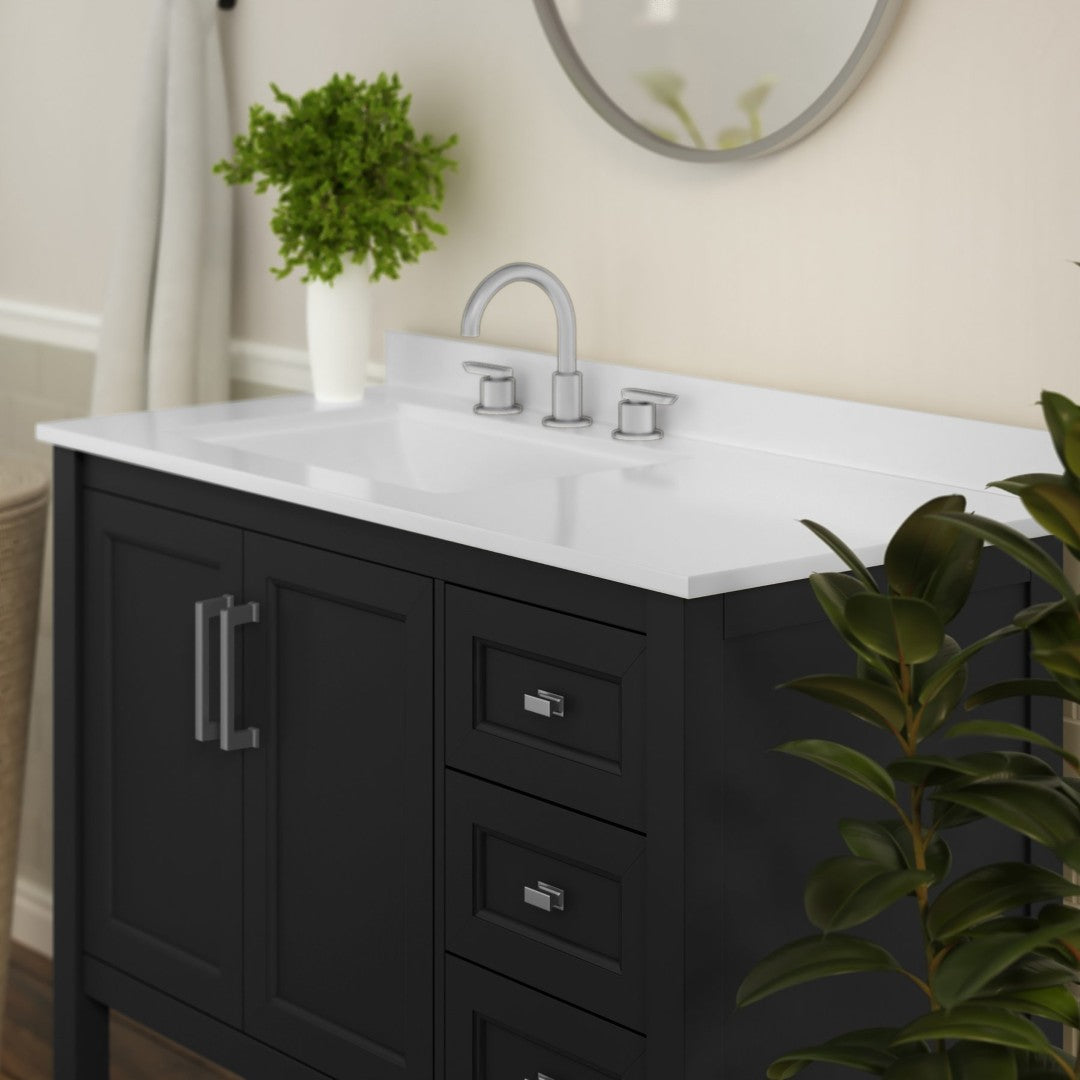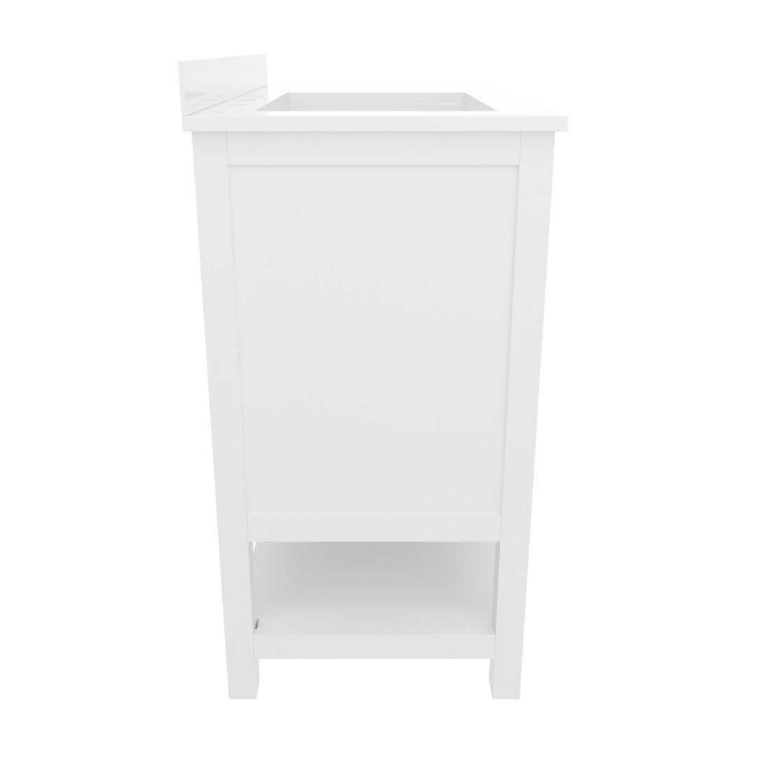 - Includes Cabinet, Countertop, Backsplash, and Ceramic Sink (Faucet and Drain Not Included)