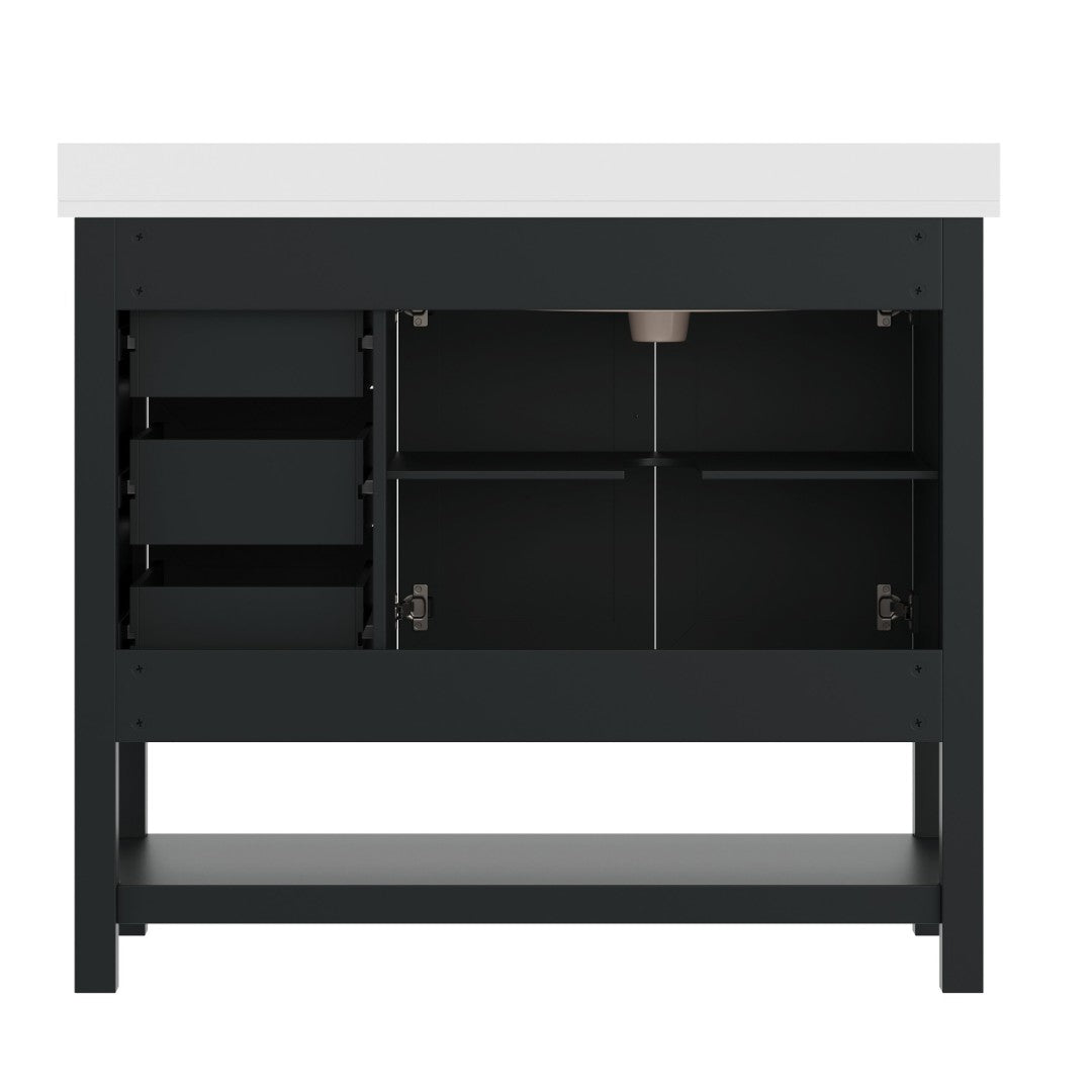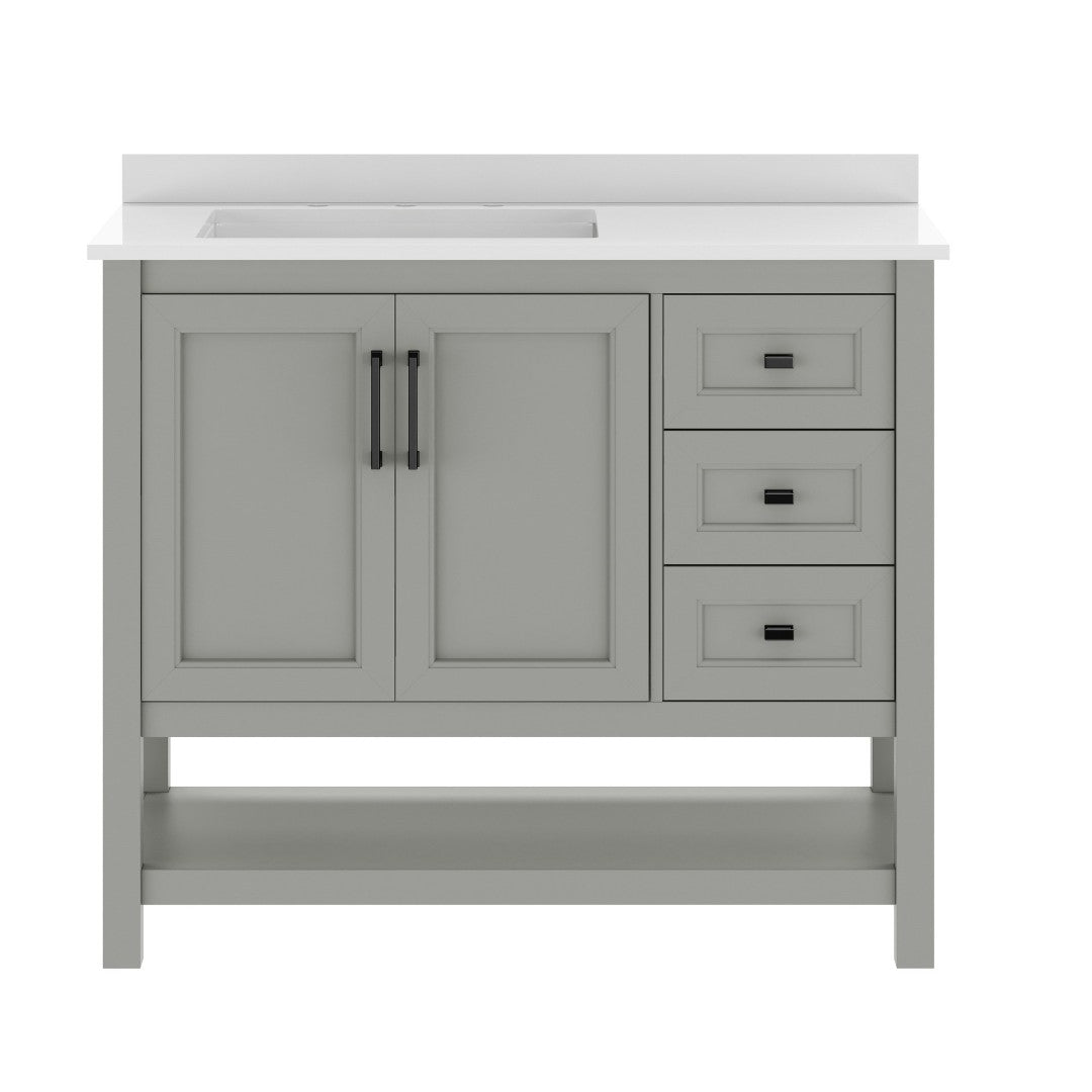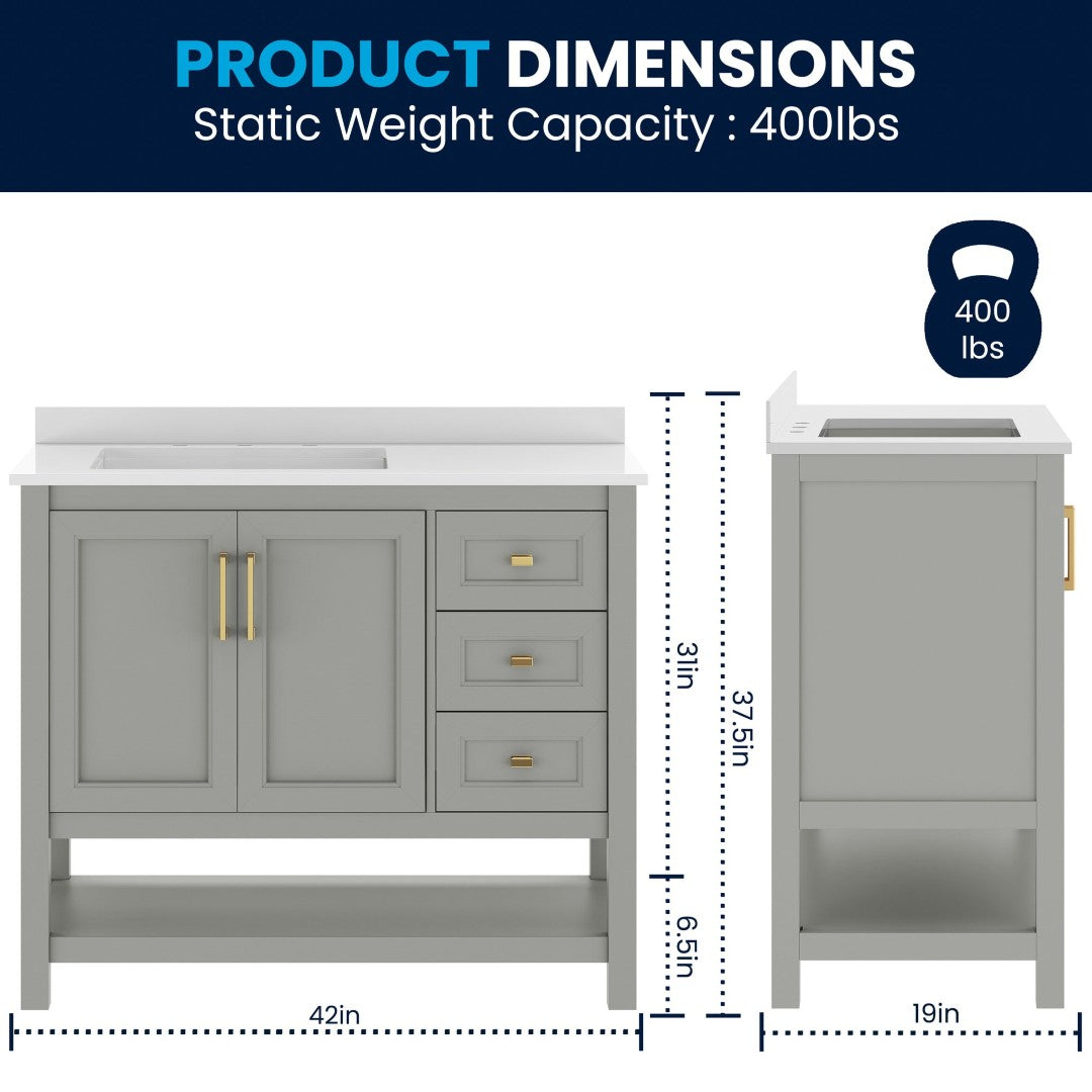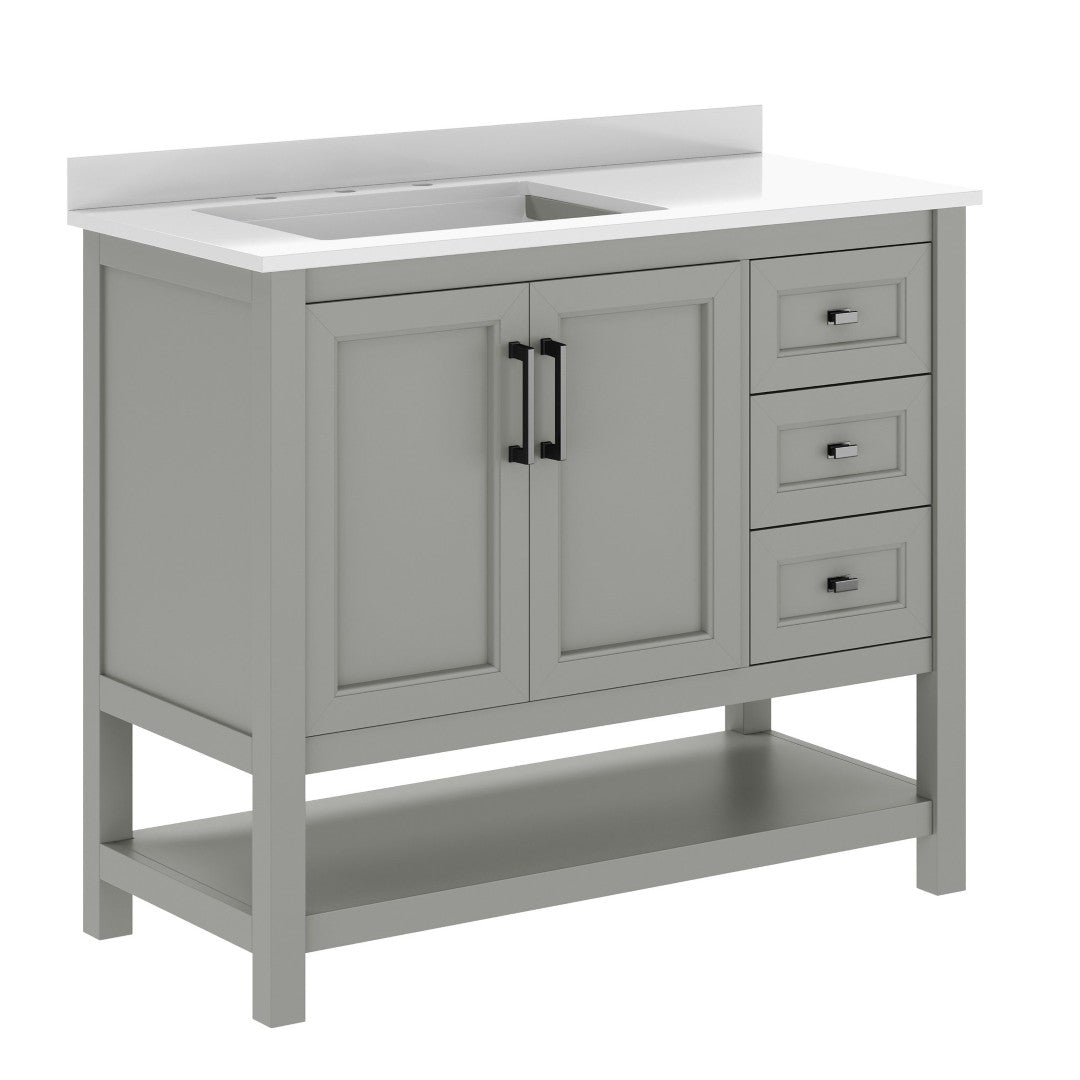 - Includes Cabinet, Countertop, Backsplash, and Ceramic Sink (Faucet and Drain Not Included)