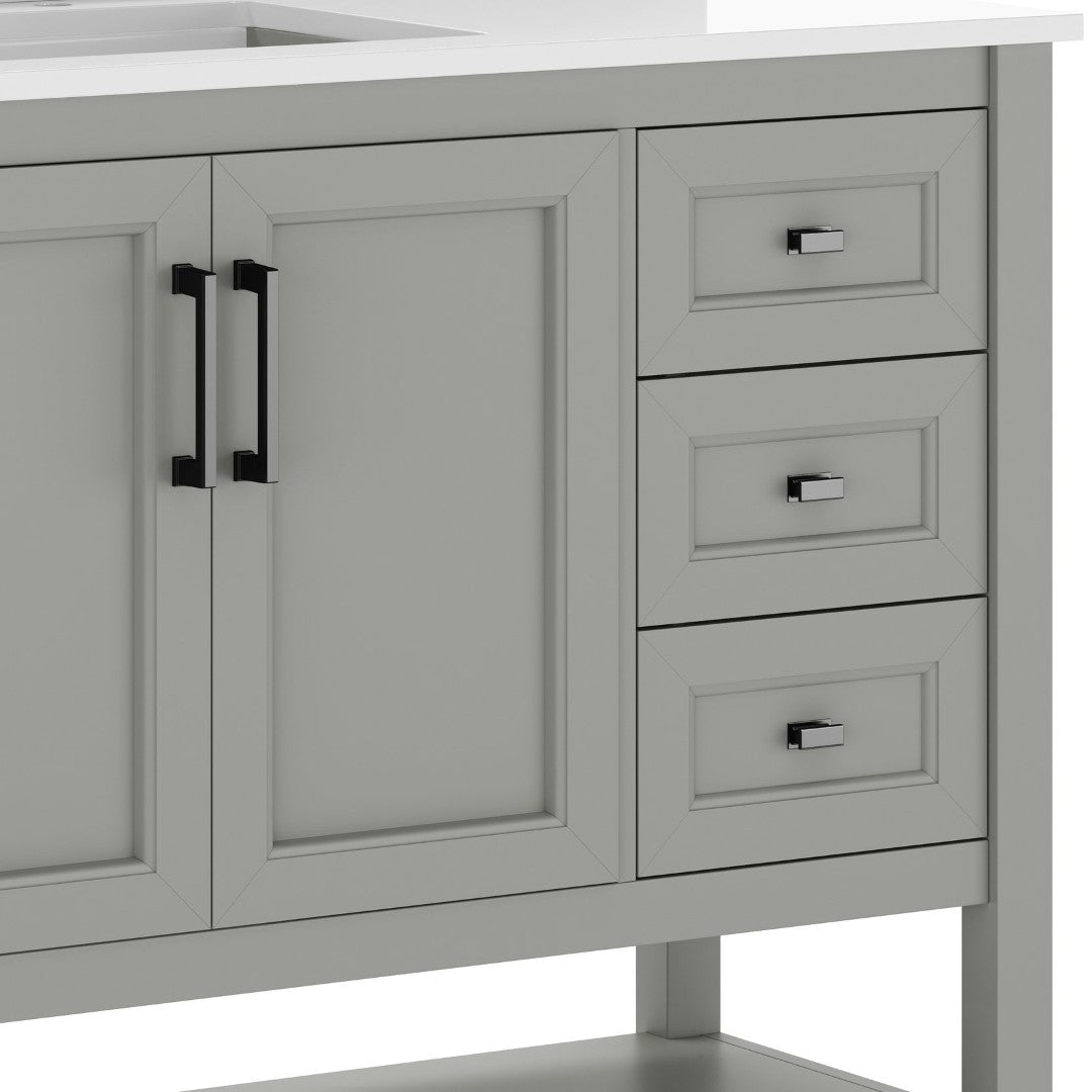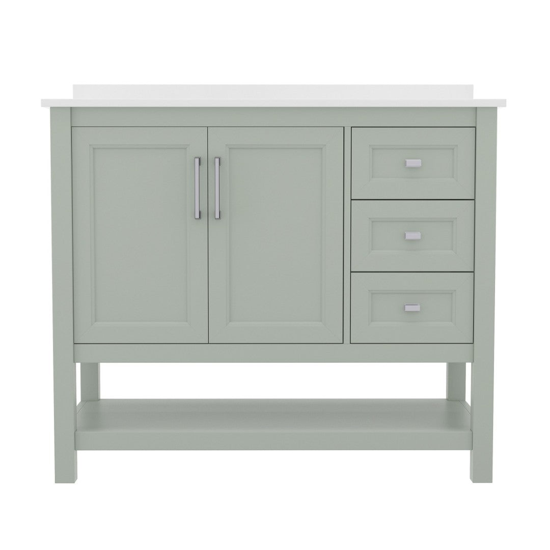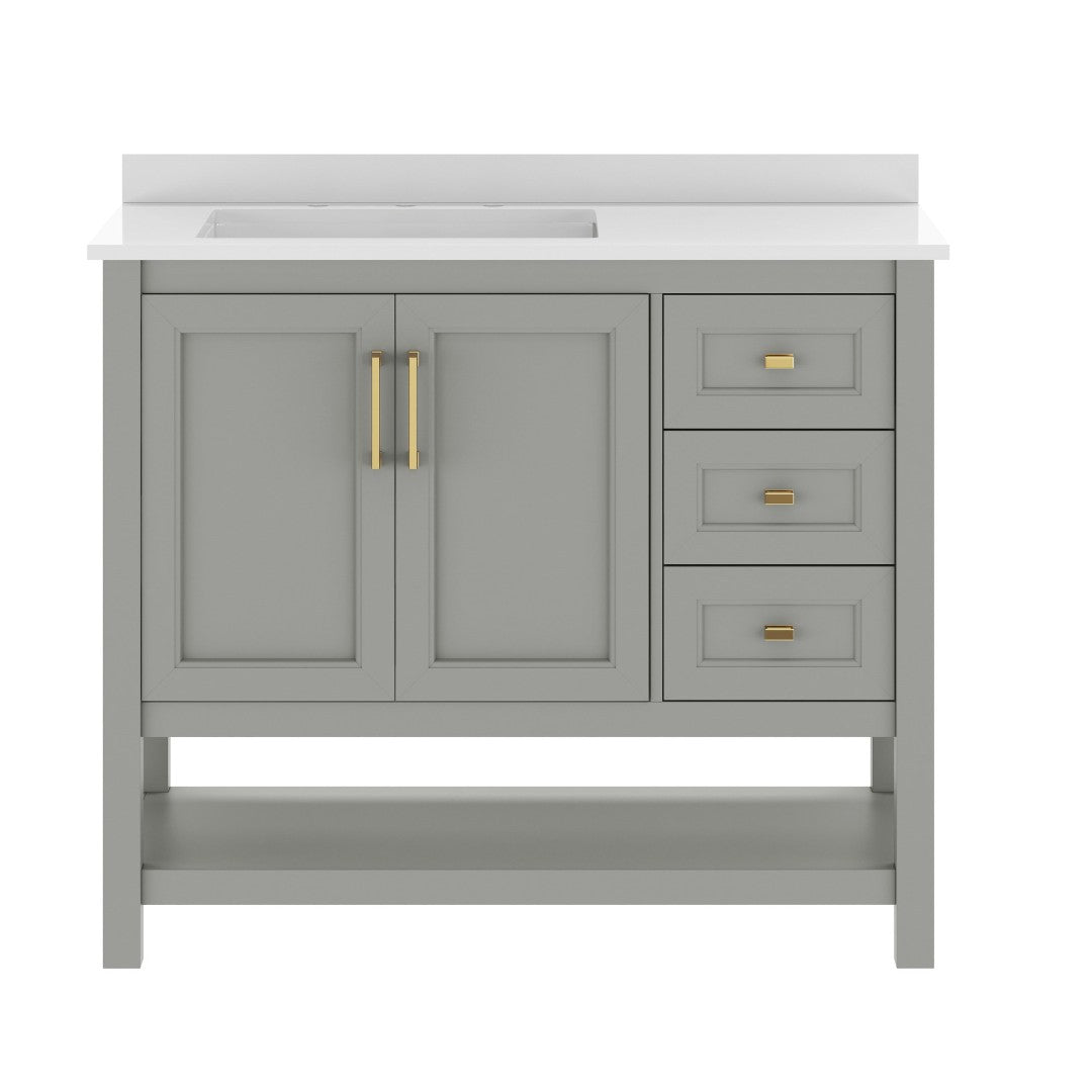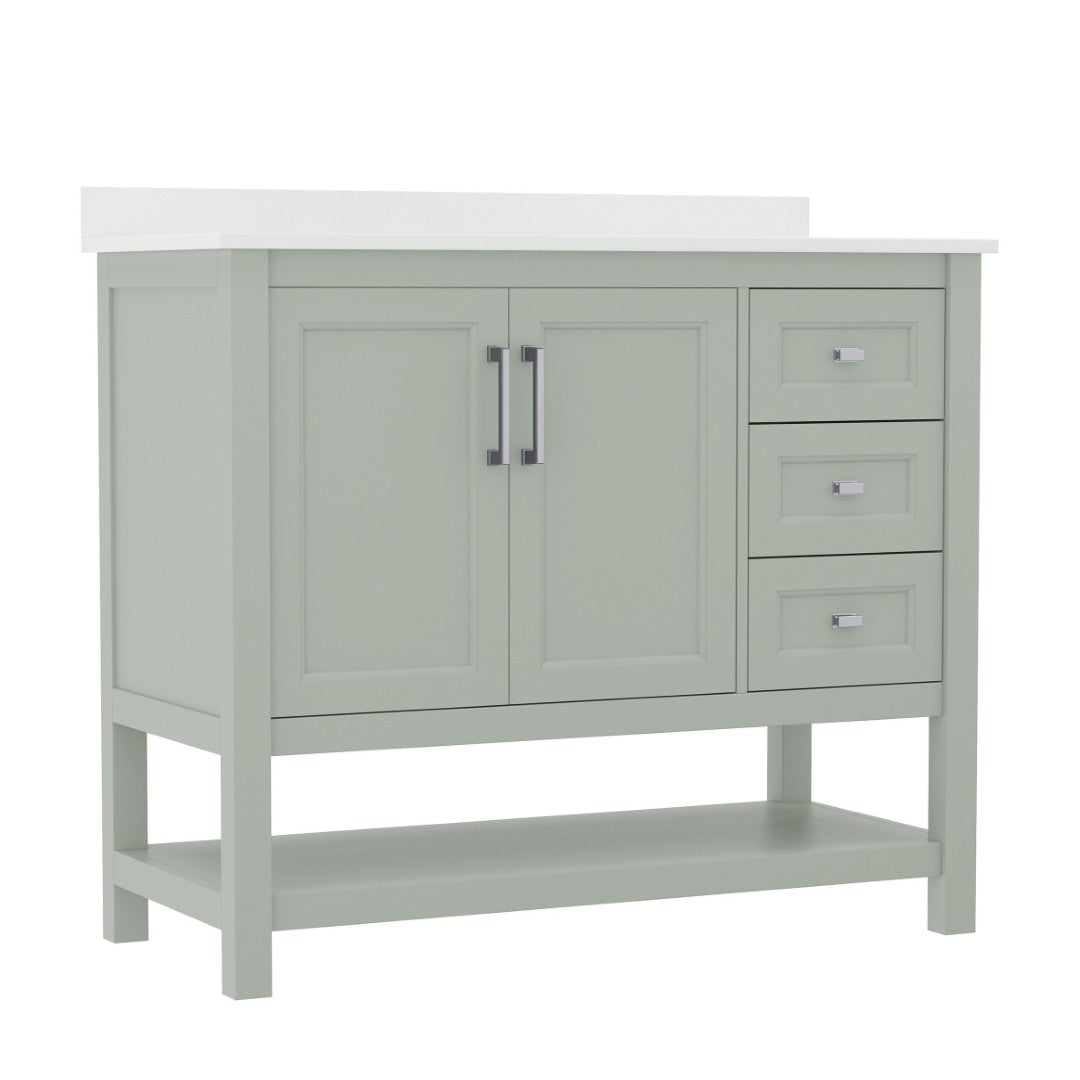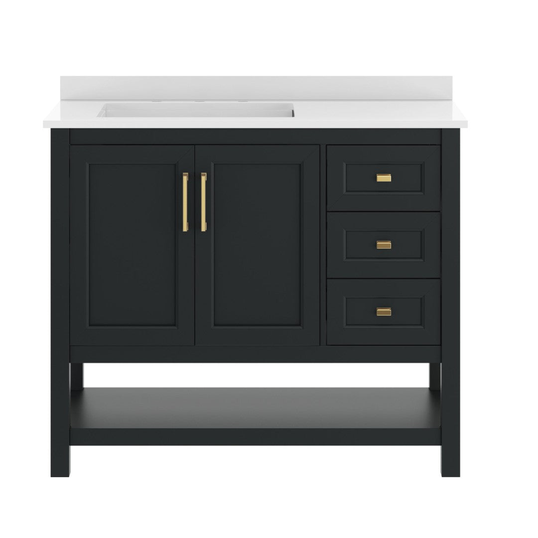 - Includes Cabinet, Countertop, Backsplash, and Ceramic Sink (Faucet and Drain Not Included)