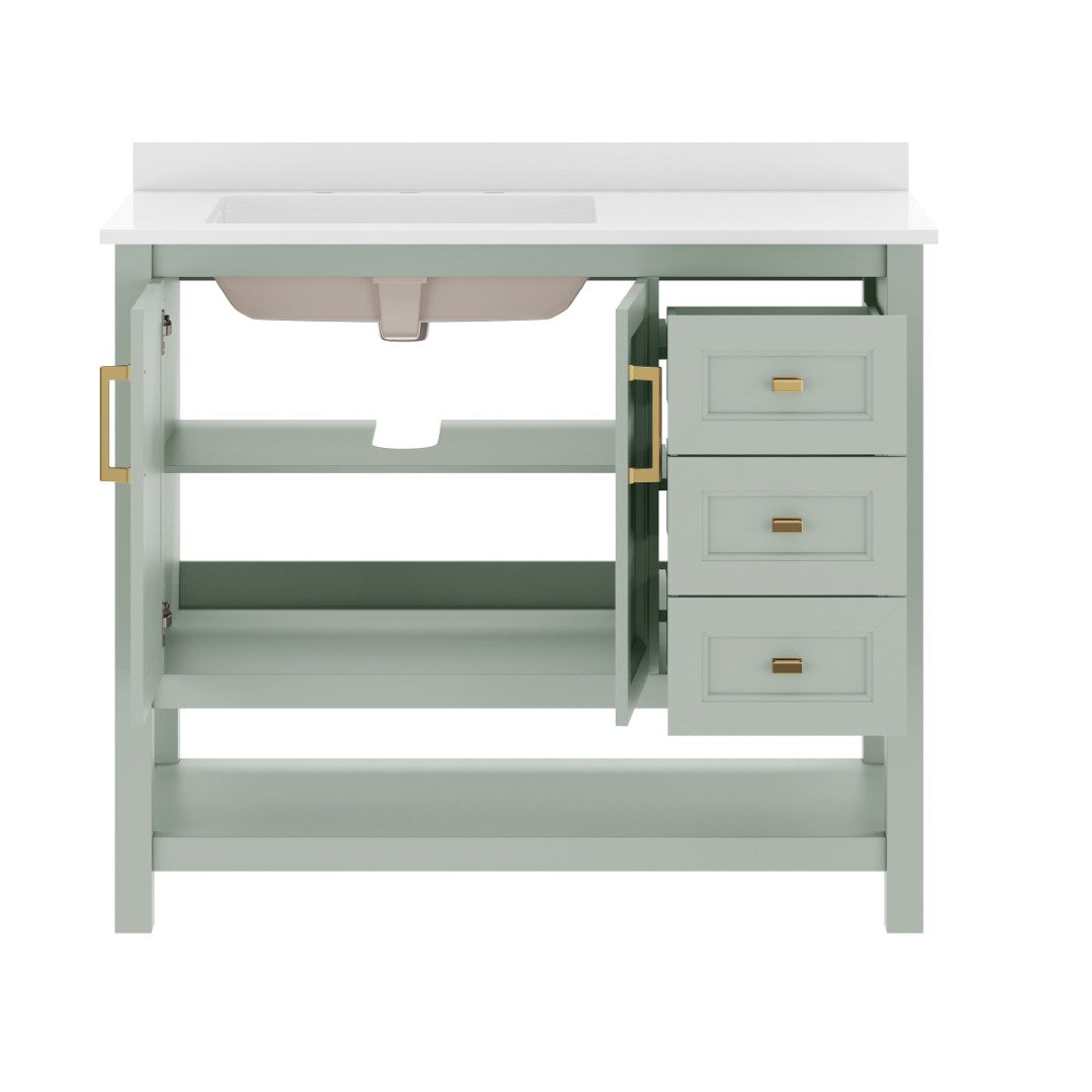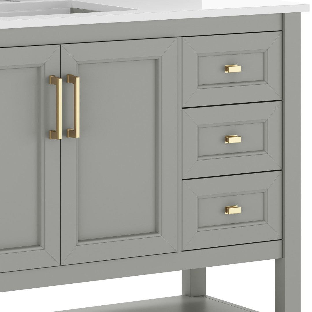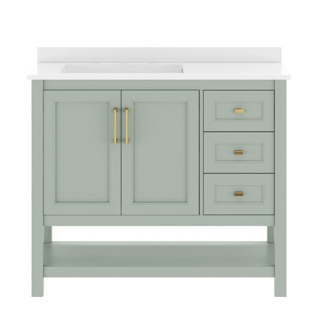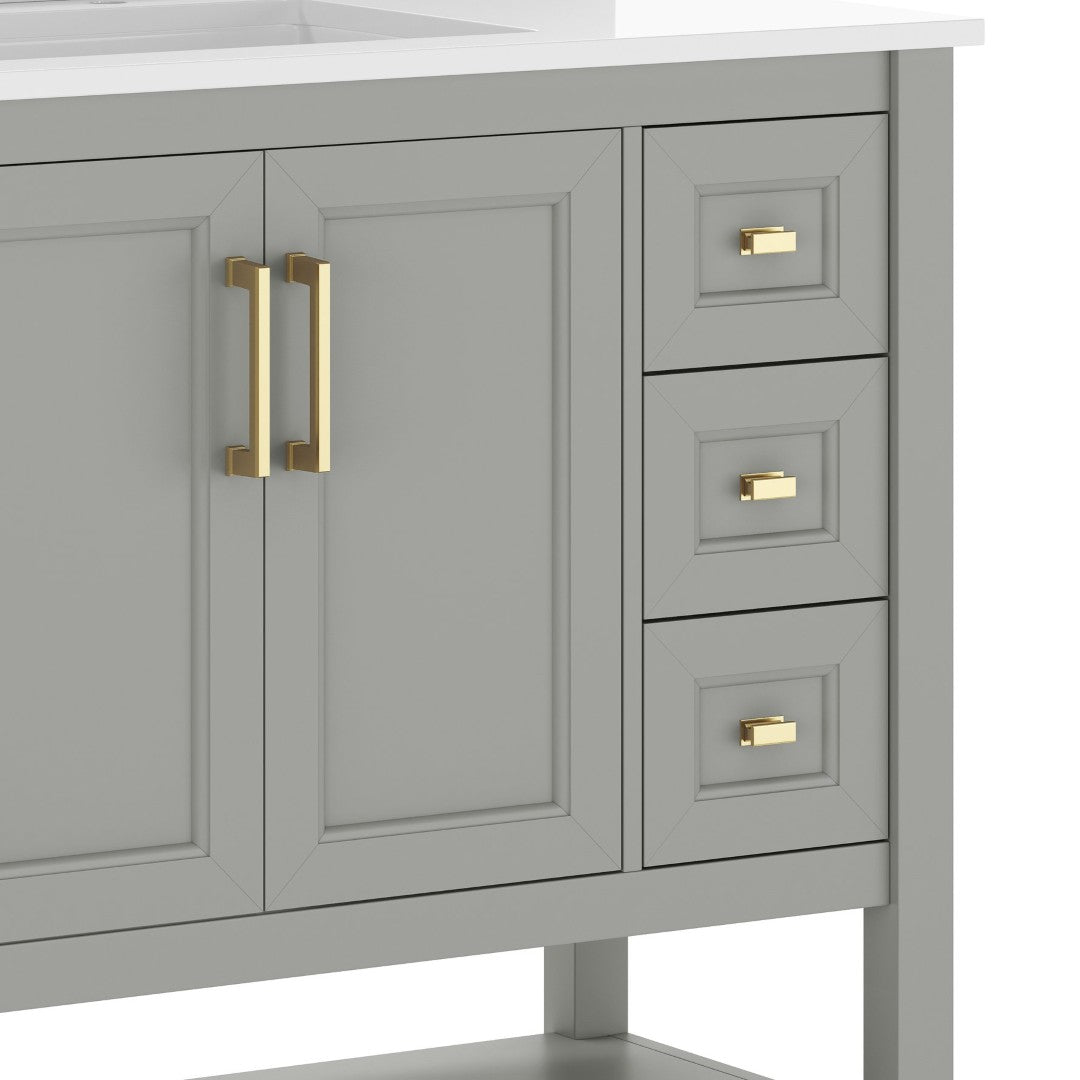 - Includes Cabinet, Countertop, Backsplash, and Ceramic Sink (Faucet and Drain Not Included)