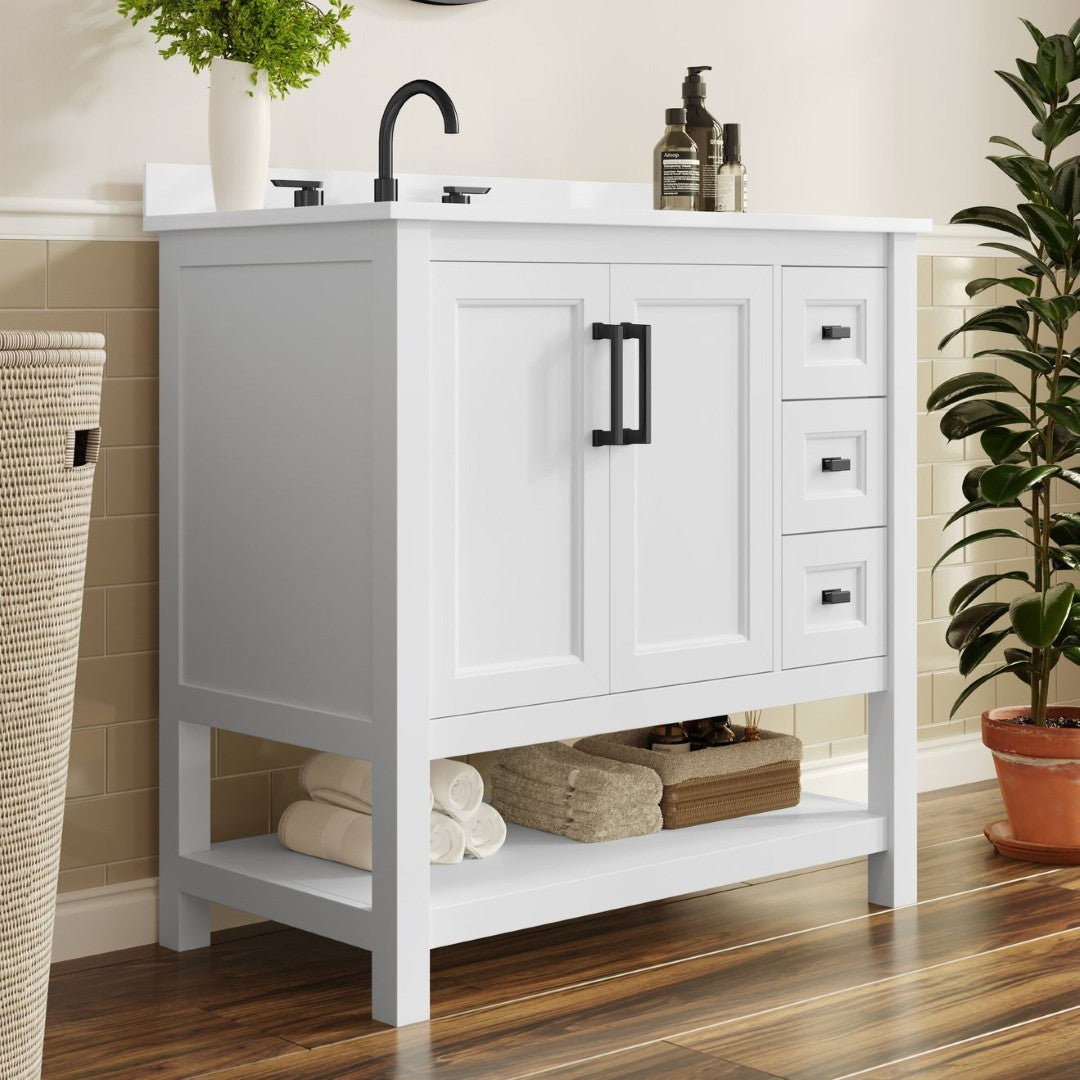 - 36 Inch Contemporary Bathroom Vanity with Storage Drawers and Sink Combo
