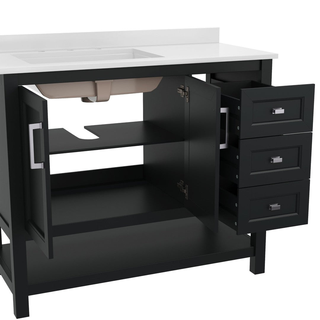 - Generous Cabinet Storage with Adjustable Removable Shelf and 3 Easy Glide Drawers