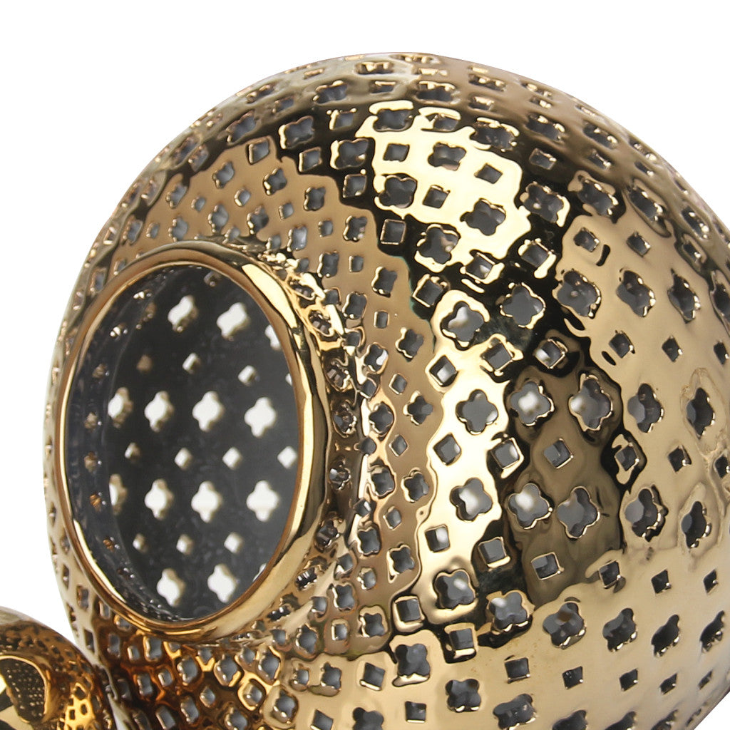 - Round ceramic vase in elegant gold finish.