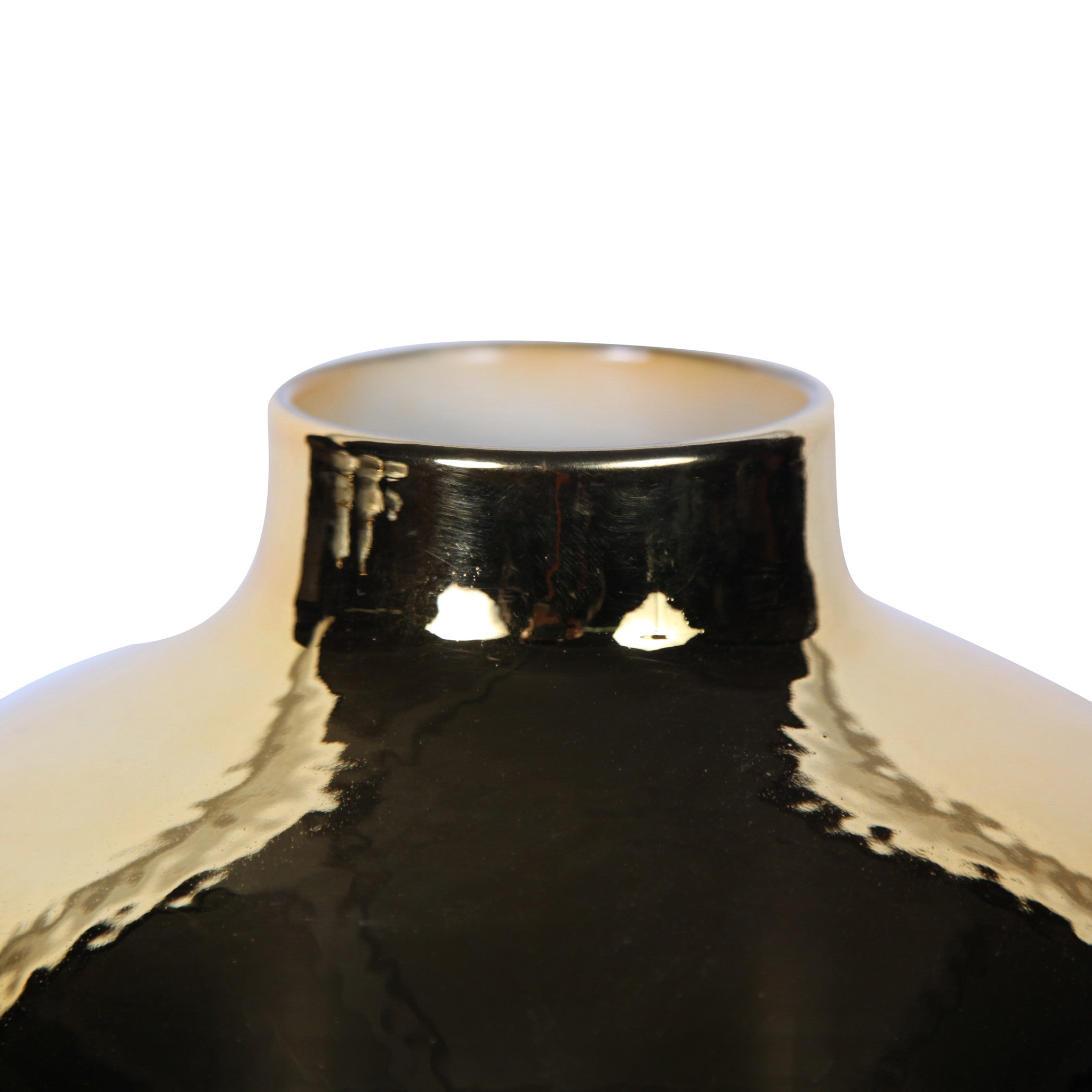 - Contemporary ceramic vase features a green veiny marbleized design with gold accents.