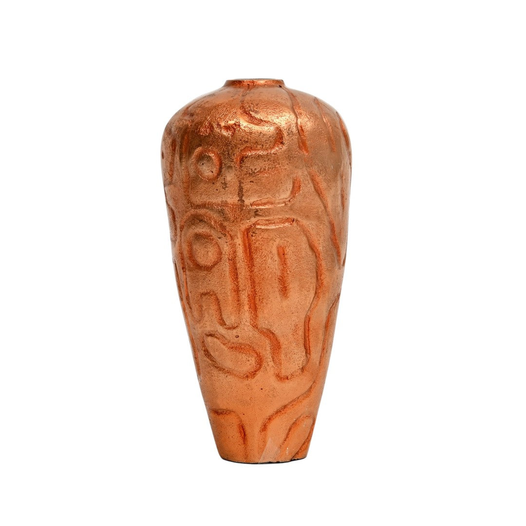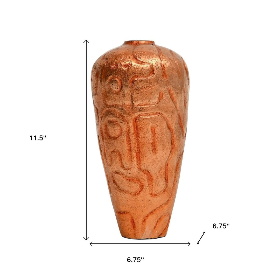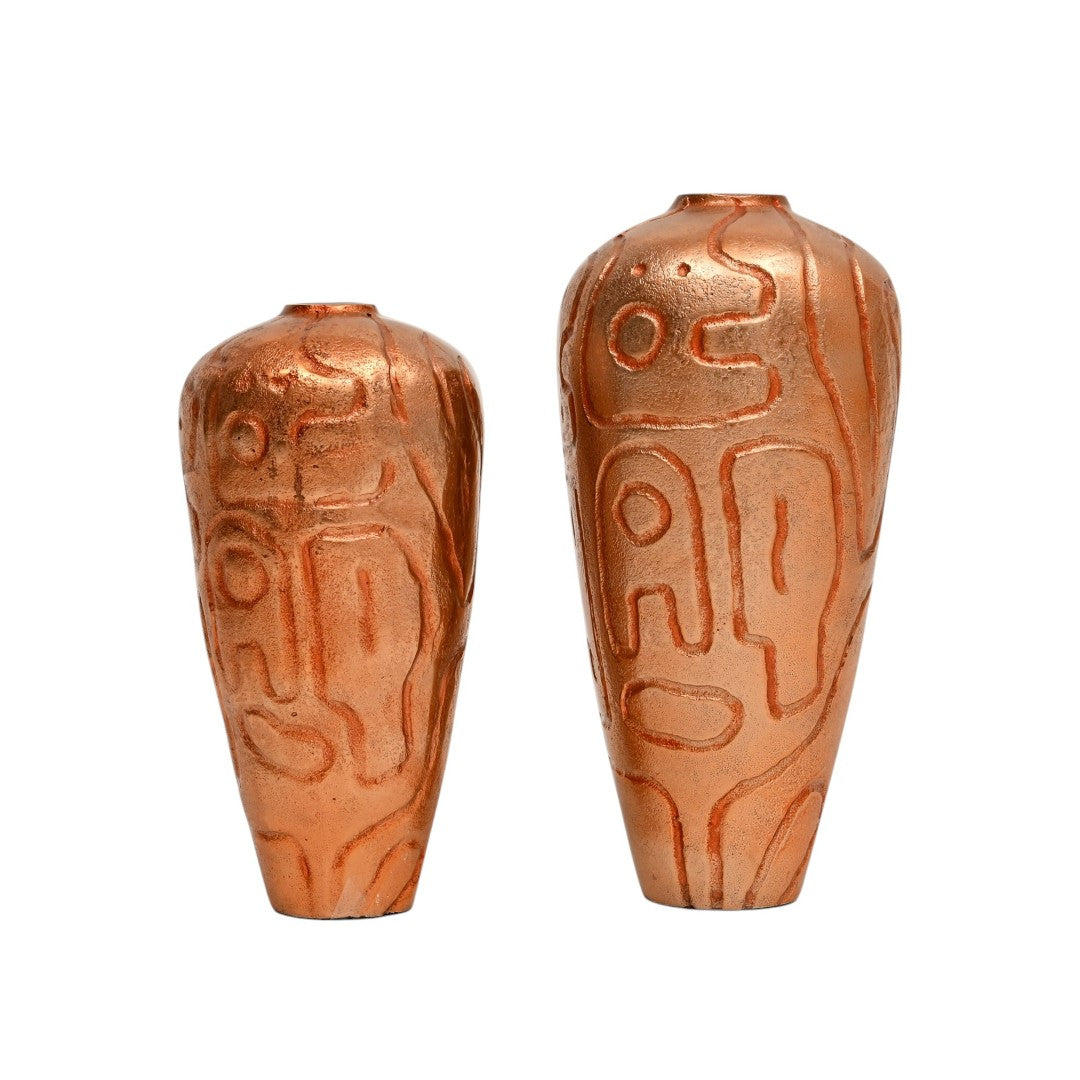 Enhance your interior with this elegant duo of abstract urn vases, finished in an antiqued copper tone with a thoughtfully distressed texture. Crafted from durable aluminum, the pair offers sculptural presence and versatile styling—use them together as a coordinated centerpiece or place them separately to punctuate different areas. Their modern urn silhouette and weathered finish bring a warm, vintage-inspired accent to contemporary spaces.