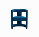 Give your room an architectural focal point with the Kendra modern accent chair. Rich blue velvet upholstery and a distinctive cage-style back create a sculptural silhouette that feels both contemporary and inviting. Thoughtful details — tuxedo arms, pipe stitching, and wrapped supports — provide refined texture while a tight back and round seat deliver comfortable, supportive seating without sacrificing style.