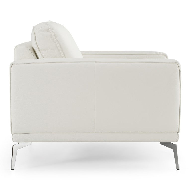 Enjoy contemporary Italian craftsmanship with the Soho armchair — a refined centerpiece that blends clean lines, premium materials, and everyday comfort. Upholstered in high-grade Italian leather in Sissi White, this armchair features exposed stitching and stainless steel legs for a relaxed modern aesthetic that pairs seamlessly with the Soho sofa or stands alone as an elegant accent.