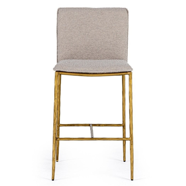 Add refined modern flair and everyday comfort to your kitchen island or bar area with this elegant counter chair. Soft off-white fabric, plush foam cushioning, and a warm brass-finished frame create a balanced look that’s both inviting and contemporary—ideal for residential or boutique hospitality settings.
