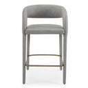 Elevate your kitchen or bar area with the Faerron counter chair — a contemporary piece that blends soft, textured leatherette upholstery with sturdy metal construction for everyday comfort and style. Its streamlined silhouette and integrated footrest make it an inviting spot for casual dining, entertaining, or morning coffee, while the neutral grey finish pairs seamlessly with a variety of décor schemes.