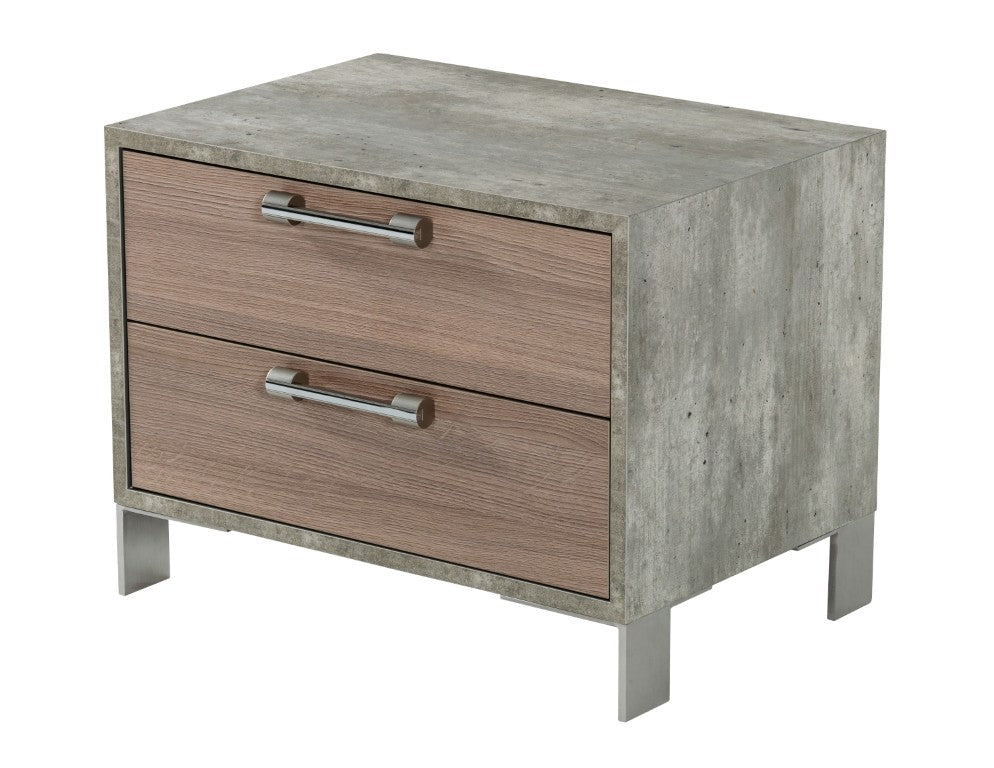 Bring modern industrial style to your bedroom with a striking nightstand that pairs warm brown oak textures with cool faux concrete and stainless-steel accents. The Boston nightstand balances clean lines and durable materials to create a functional bedside piece that fits contemporary urban interiors.