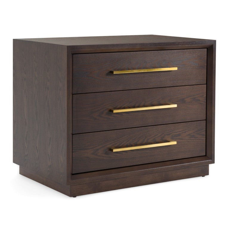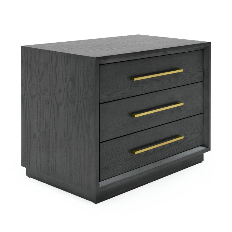 Elevate your bedroom with the Manhattan nightstand — a refined blend of contemporary design and subtle luxury. Its warm grey-wash finish and gold-tone hardware create a chic, versatile piece that complements modern and transitional interiors. Crafted for convenience and durability, this nightstand offers generous storage while maintaining a streamlined, sophisticated profile.